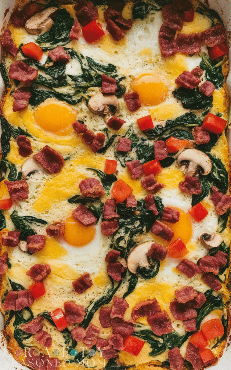 Packed with colorful vegetables like bell peppers, spinach, onions, and mushrooms, this casserole is light yet filling. It’s perfect for anyone looking for a meat-free option that still delivers flavor. Among Make Ahead Breakfast Casseroles recipes, this one stands out for its freshness and balance. The eggs bind everything together while cheese adds creaminess. Prepare it ahead, let the veggies soak up the seasoning overnight, and bake when ready. It’s a great way to start the day with more veggies and less stress.