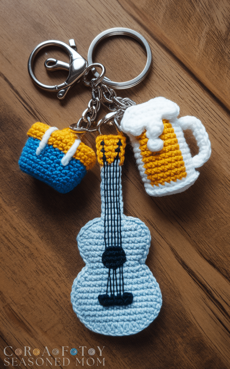 A crochet keychain may be small, but it’s one of the easiest crochet gifts for men to personalize. You can use thick yarn and simple shapes to keep it sturdy. These crochet gifts for men are great for everyday use and make thoughtful handmade presents without taking much time to create.
