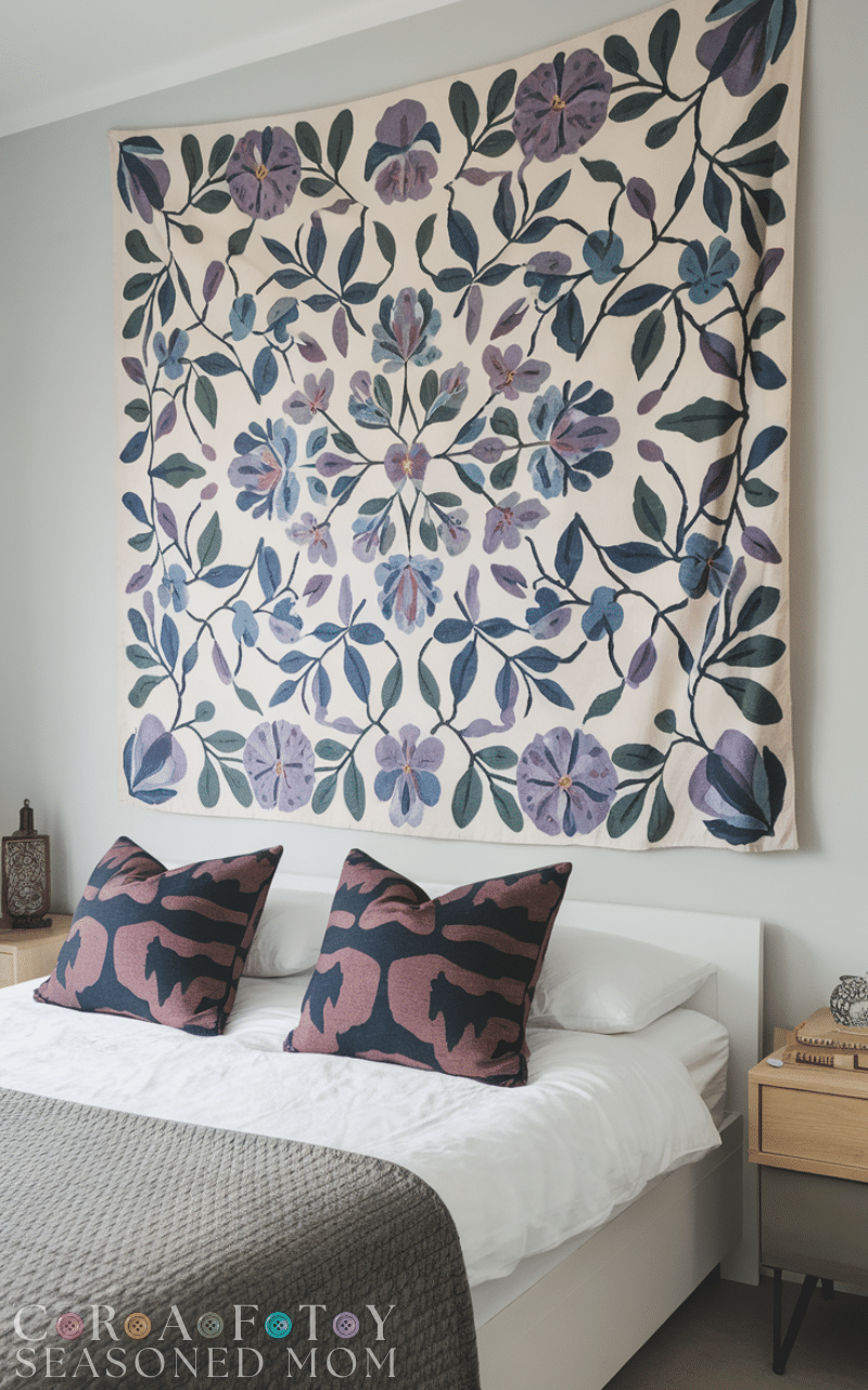 I adore hanging a tapestry above my bed for softness and warmth. Whether intricate, colorful, or minimalist, a tapestry adds texture and personality. Combining it with cozy bedding or complementary pillows turns your space into a welcoming retreat.
