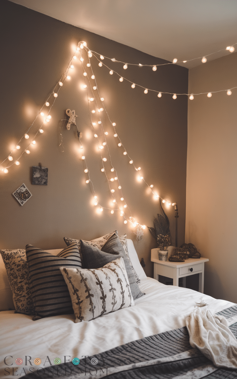 String lights create warmth and whimsy. I enjoy draping fairy lights or LED strands for soft illumination, which instantly transforms the bedroom into a cozy haven. Combining lights with small decor or wall accents adds charm without permanent changes.