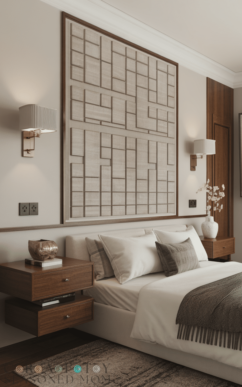 Floating nightstands combine style and practicality. I use them to display decor or store essentials while enhancing the wall area above the bed. Adding coordinated wall accents or art pieces ties the room together, making the space feel organized and intentional.