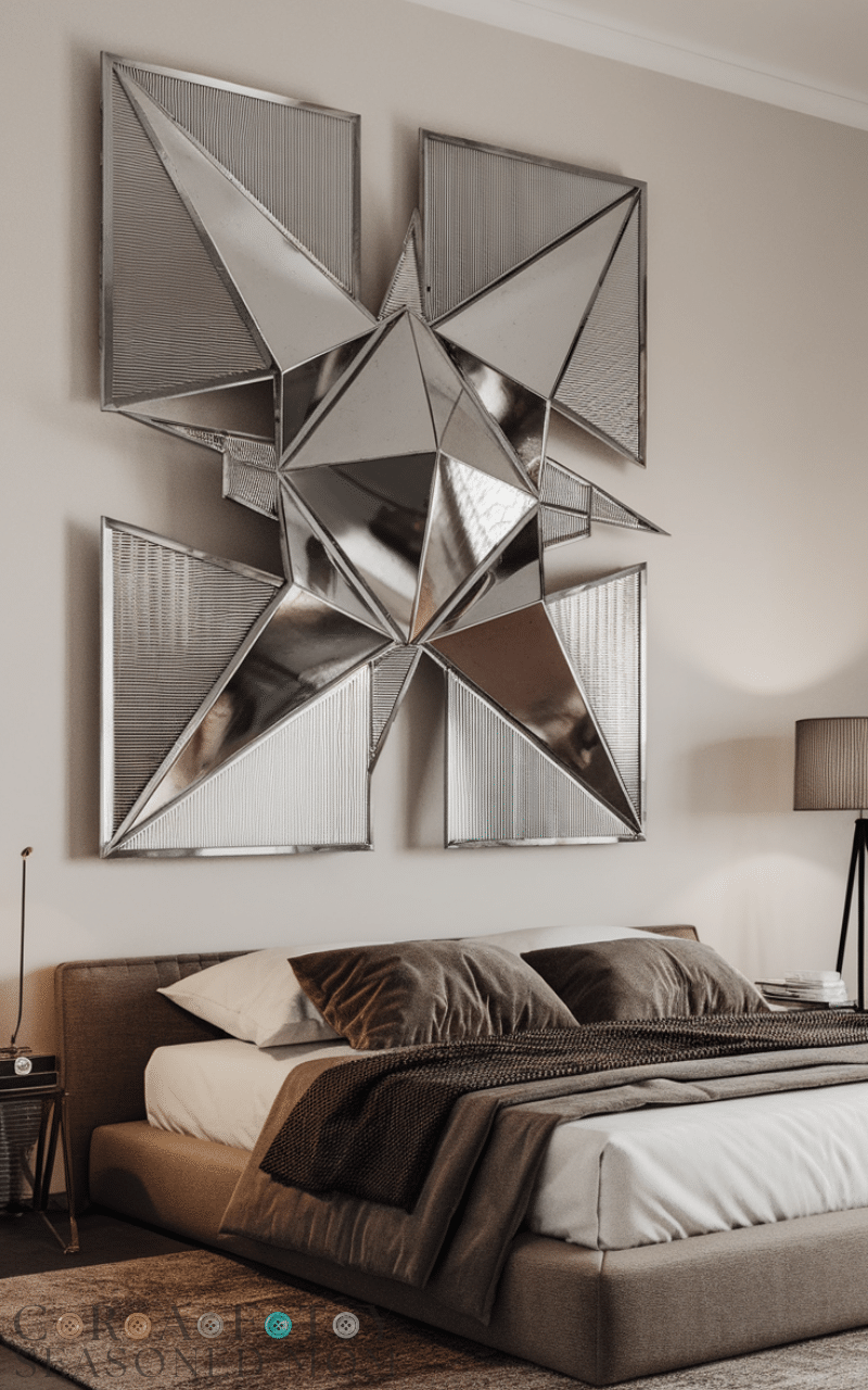 Metal art introduces modern sophistication. I love geometric or abstract designs, which add visual interest and catch light beautifully. Pairing metal pieces with soft textures like bedding or rugs creates a balanced look and ensures your Above Bed Decor doesn’t feel too harsh.
