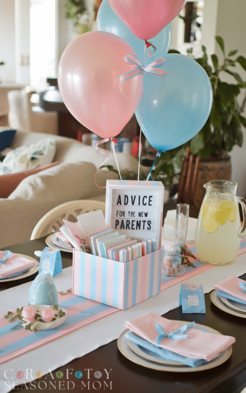 Set up a beautiful table with stationery for guests to write advice, wisdom, and well wishes for the new parents. This meaningful activity, one of the most touching baby shower activities that are not games, creates a bundle of heartfelt tips and reminders that parents can revisit again and again when they need support or encouragement.