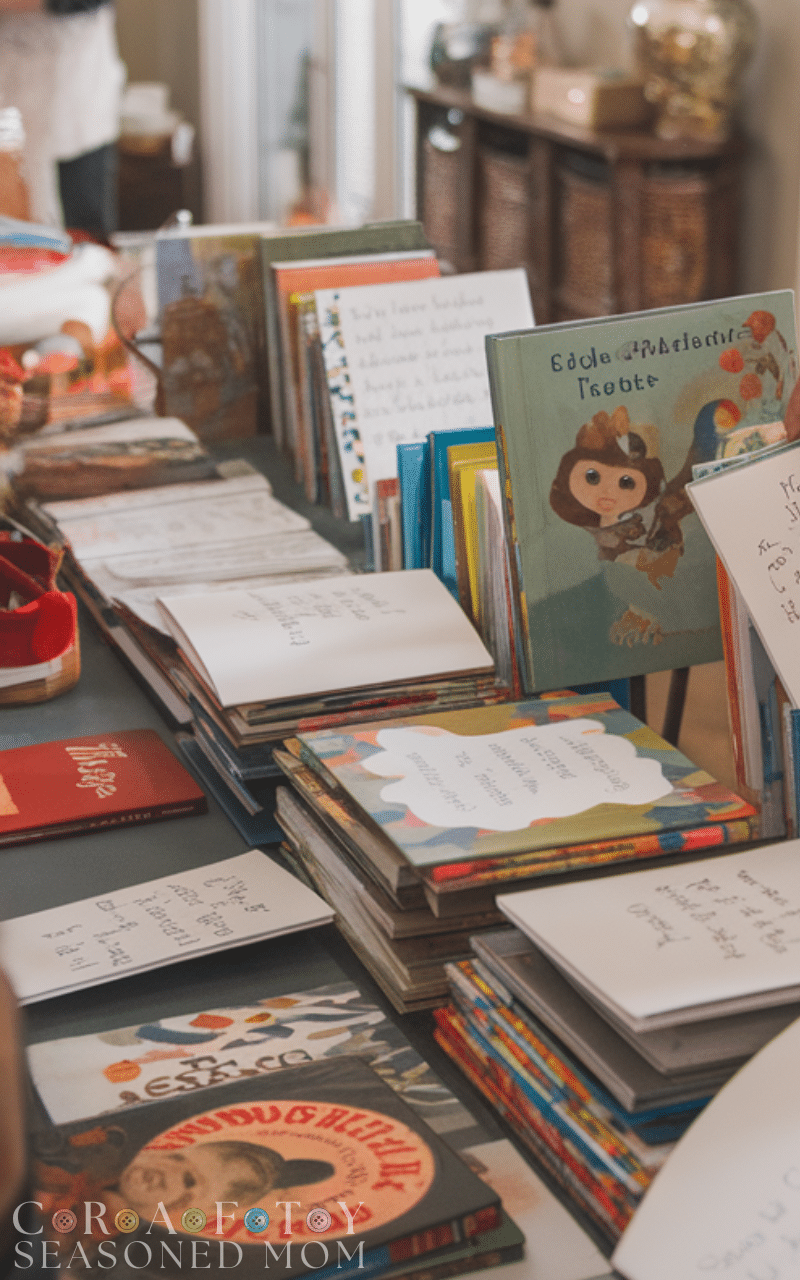 For a heartfelt twist on baby shower activities that are not games, ask guests to bring a favorite children’s book instead of a card, and have them write a personal message inside. This builds a treasured library for the baby’s early years and gives the parents a lifelong collection that’s meaningful, educational, and full of memories straight from loved ones.