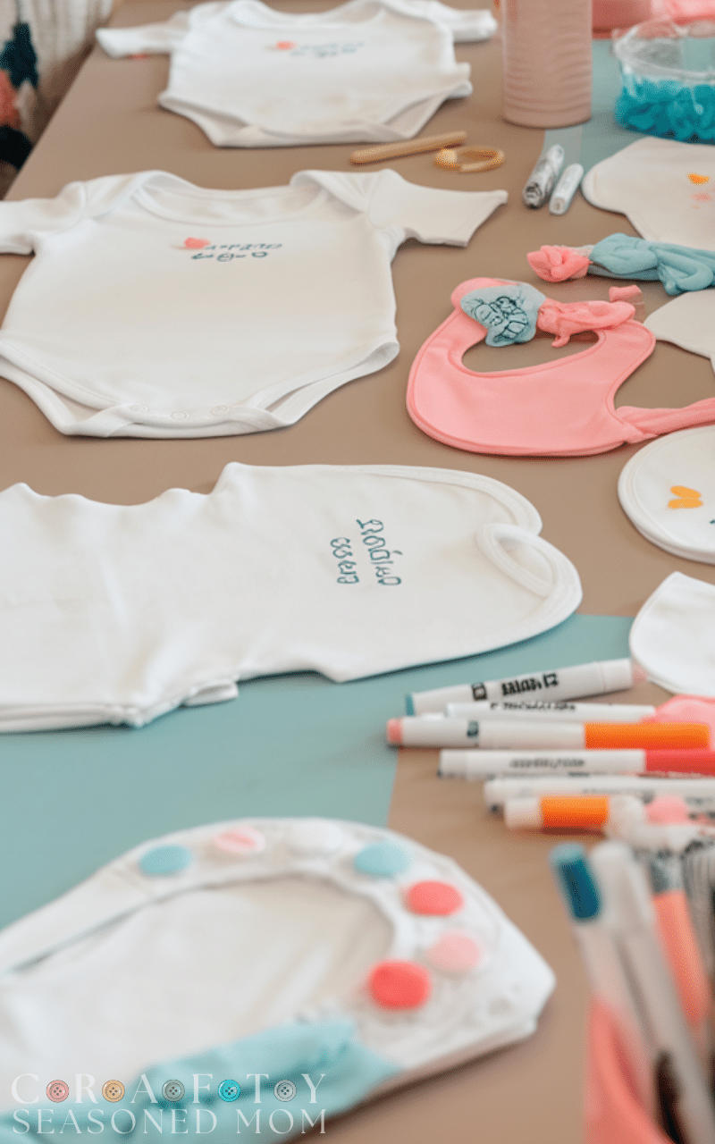 A popular and creative option among baby shower activities that are not games is a decorating station with plain onesies and bibs, fabric markers, paints, and fun embellishments. Guests can design adorable custom outfits and essential accessories for the newborn, turning creativity into practical keepsakes the parents will use again and again, also letting everyone feel connected to this special new arrival without competitive pressure.