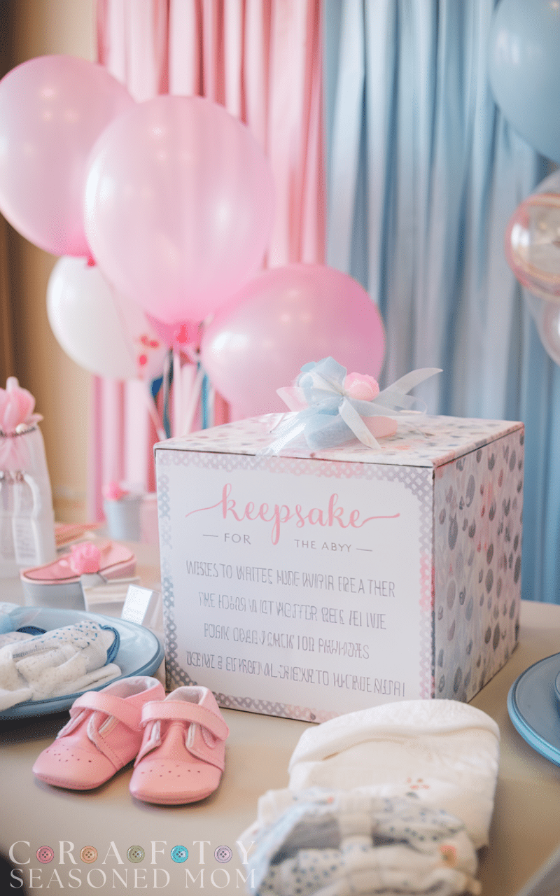 One of the sweetest baby shower activities that are not games is creating a Wishes for Baby Time Capsule, where guests write their hopes, dreams, and heartfelt messages on cards and tuck them into a keepsake box. Throughout the shower, everyone can share what they wrote, making this a sentimental experience with meaning, laughter, and joy, and later the parents will treasure opening it with their child years down the road, turning your event into a timeless memory.