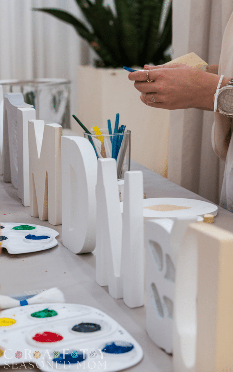 Have guests decorate wooden letters that spell the baby’s name or initials with paints and other craft supplies. This activity, a creative example of baby shower activities that are not games, gives the parents personalized decor for the nursery and a heartfelt reminder of all the love that surrounded their baby’s arrival.