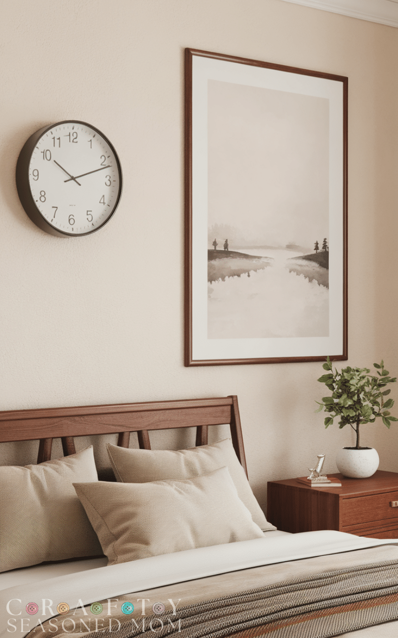 Bedroom wall decor ideas can stay simple with minimal decals or soft quote lettering. Choose calming words or subtle designs that inspire relaxation. These bedroom wall decor ideas are budget-friendly and renter-friendly. Neutral colors keep the look elegant and timeless rather than trendy or overwhelming.