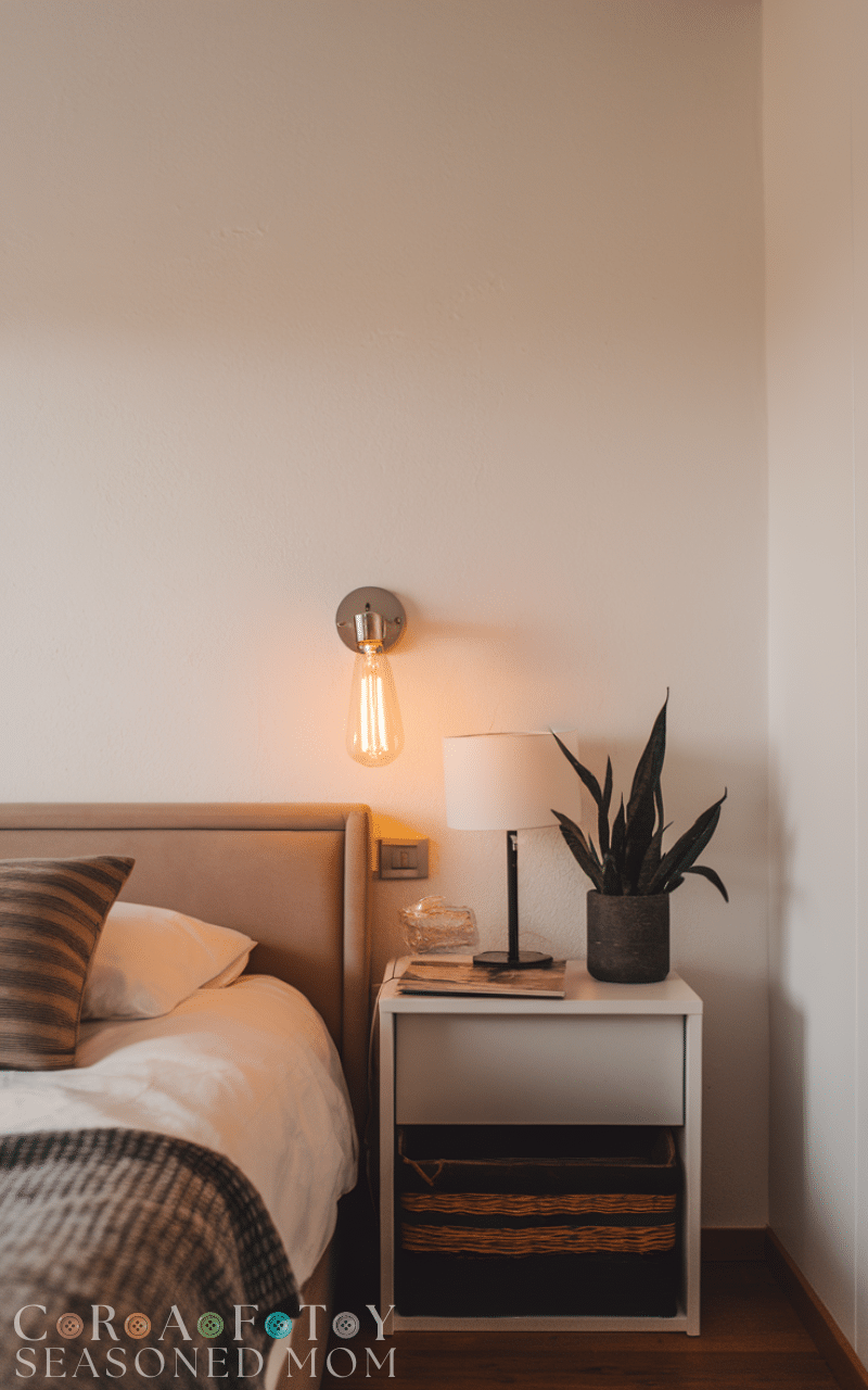 Bedroom wall decor ideas become stylish and practical with wall-mounted lights or sconces. These lights free up nightstand space and create a cozy ambiance. These bedroom wall decor ideas are ideal for modern and small bedrooms. Choose warm lighting to maintain a calm and restful environment that supports better sleep.