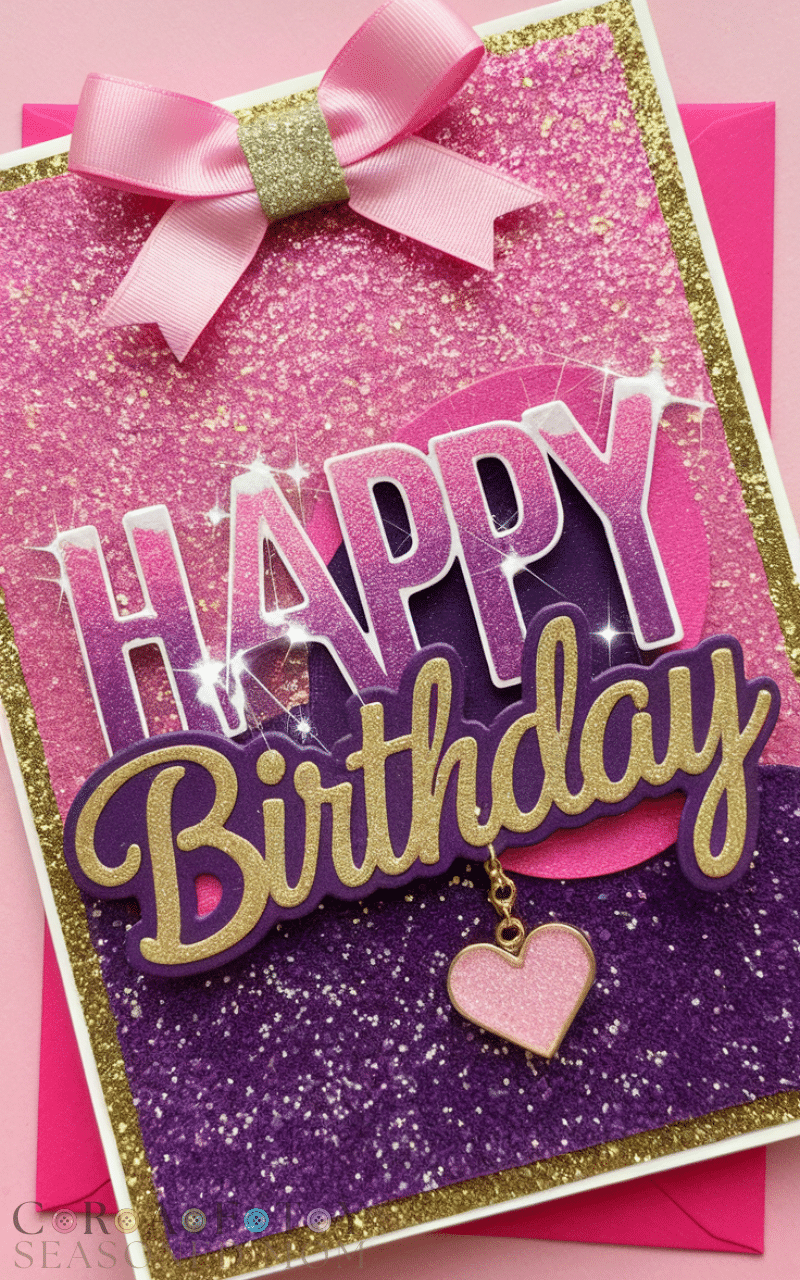 For girls who love sparkle, a glitter and glam card is one of the most stylish Birthday Card Ideas for Tween Girls. I usually start with glitter cardstock or add a little glitter glue along the edges to create a shiny border. It makes the card feel festive right away.