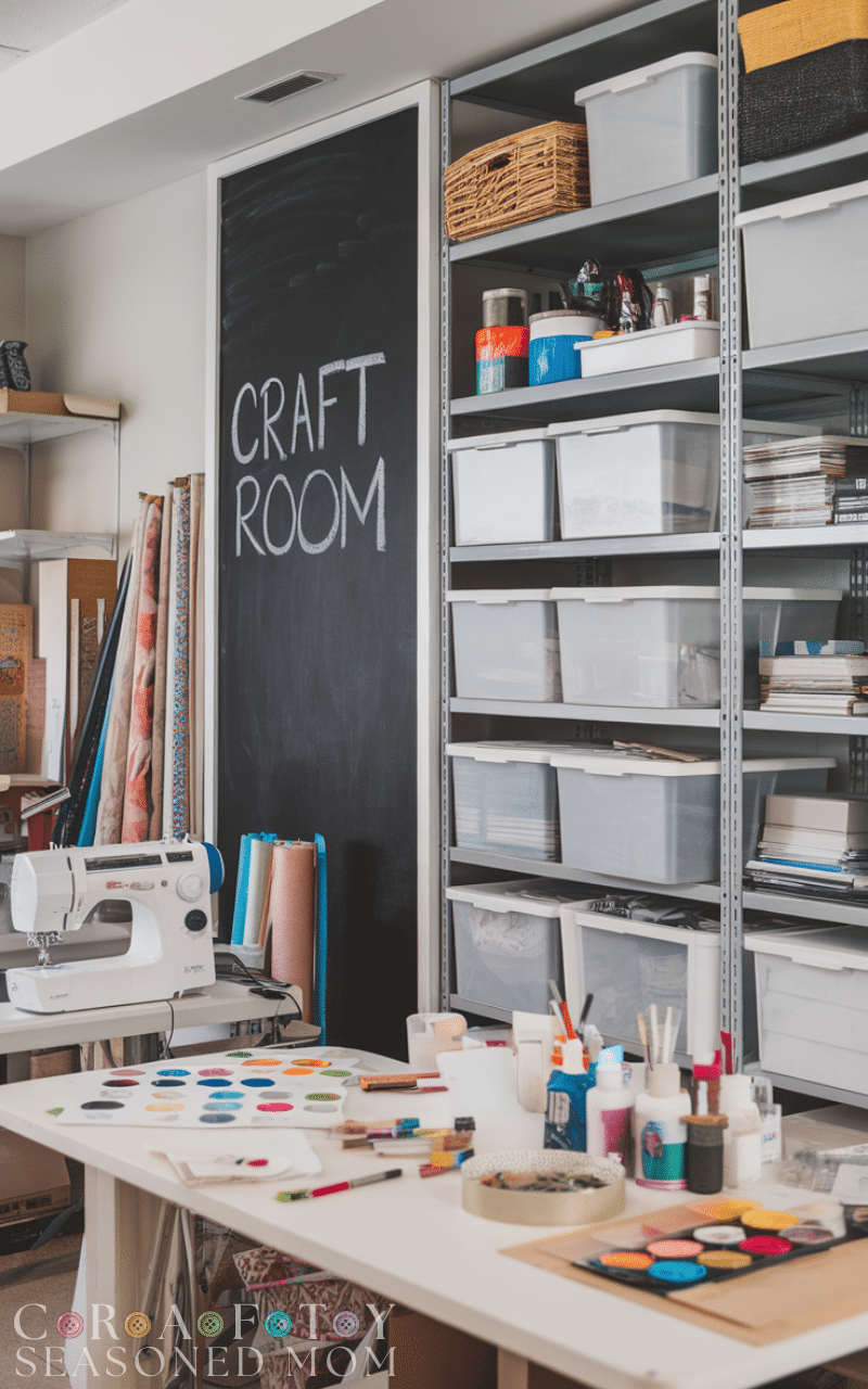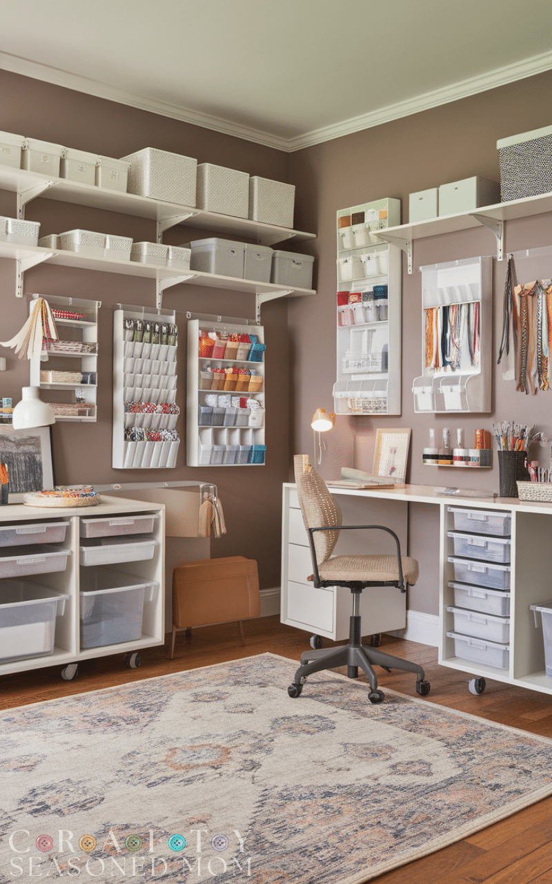 You can improve your Craft Room Layout by using dark dressers and matching fabric boxes to hide the visual noise. A smart Craft Room Layout keeps only the sewing machine and essential tools out while tucking the rest away safely.