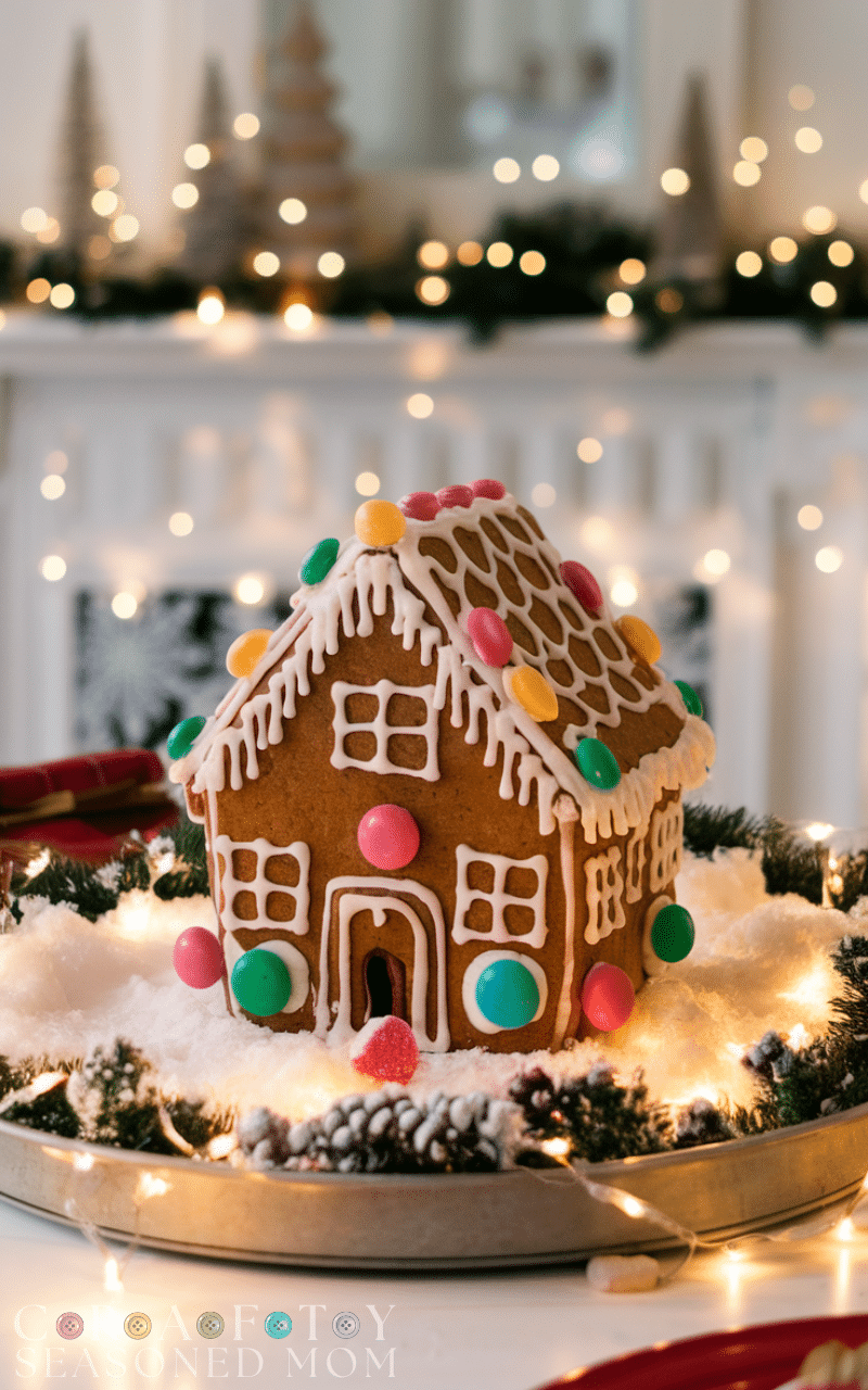 A gingerbread house centerpiece is both decorative and delicious and it’s one of the most charming DIY Christmas centerpieces for table you can make. You can bake or buy a gingerbread house kit and decorate it with colorful candies and icing. When you place it on a tray surrounded by fake snow and fairy lights it becomes the sweetest centerpiece that guests will love to admire and maybe even taste.
