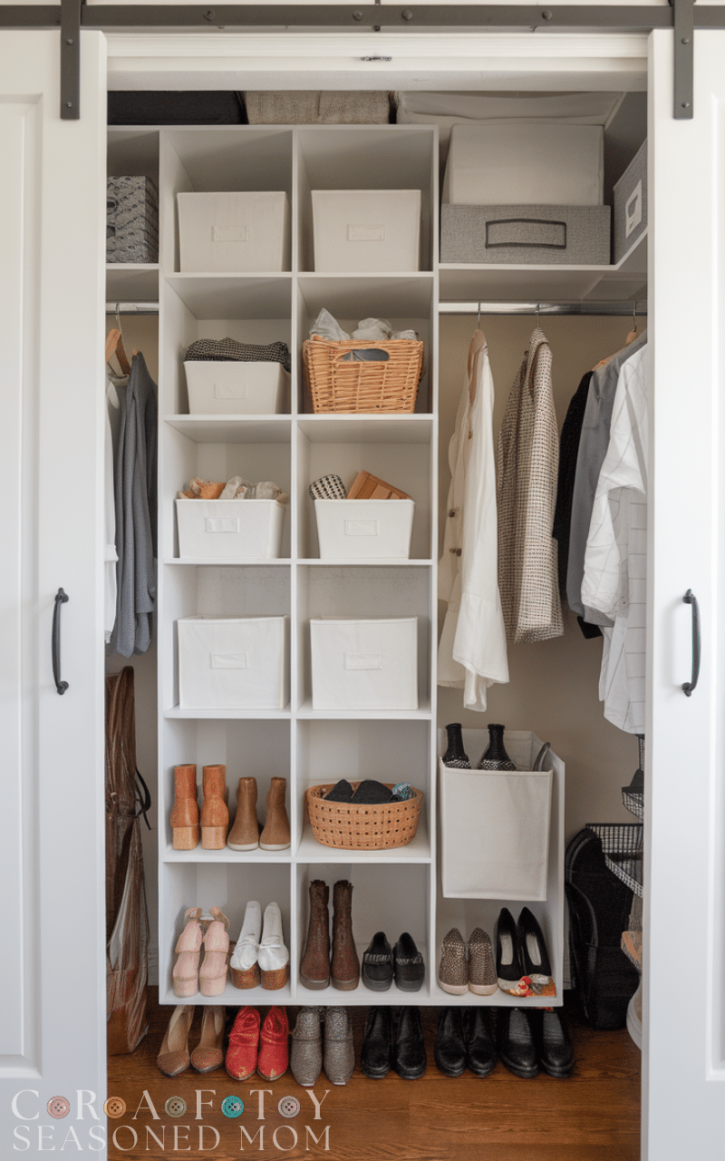 Cube organizers are versatile and easy to assemble. They work perfectly as DIY closet shelves for shoes, baskets, and accessories. Add fabric bins inside the cubes to keep items hidden and tidy. DIY closet shelves with cube storage are ideal for creating clear sections and maintaining order.