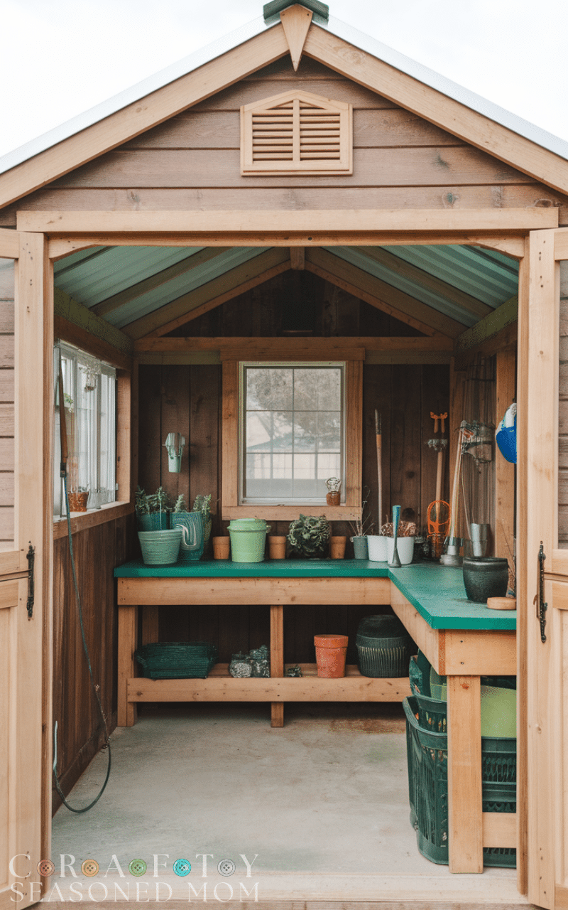 Garden shed ideas often add a potting bench inside or just outside the shed. This creates a dedicated workspace for planting and repotting. With a garden shed, a potting bench enhances function while keeping soil and plants contained.