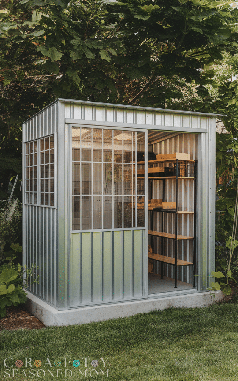 Shed ideas using metal provide durability and weather resistance. Add wall-mounted or freestanding shelves to maximize storage. With garden shed ideas, a sturdy metal shed combined with clever storage keeps tools safe and organized.