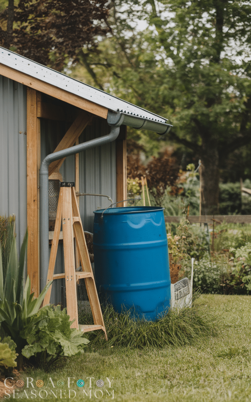 Garden sheds often incorporate a small rain barrel or water station outside. Connect gutters or place barrels for irrigation. With garden shed ideas, this adds sustainability while keeping watering tools centralized.
