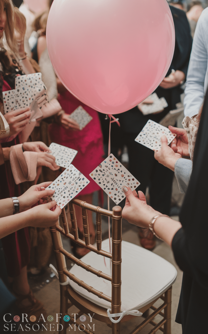 This practical activity doubles as one of the smartest gender reveal games. Guests bring diapers and write their gender guess on a ticket. One ticket is drawn for a prize, while all diapers help the parents prepare for the baby. It’s budget-friendly and useful at the same time.