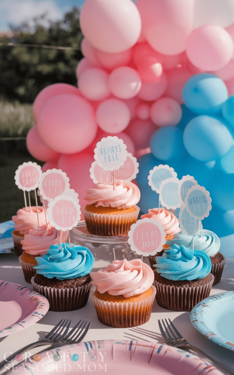 Cupcake surprise is a sweet addition to gender reveal games. Guests choose a cupcake and take a bite to discover the filling color inside. Pink or blue filling reveals the baby’s gender. This game combines dessert with excitement and works beautifully for small gatherings.