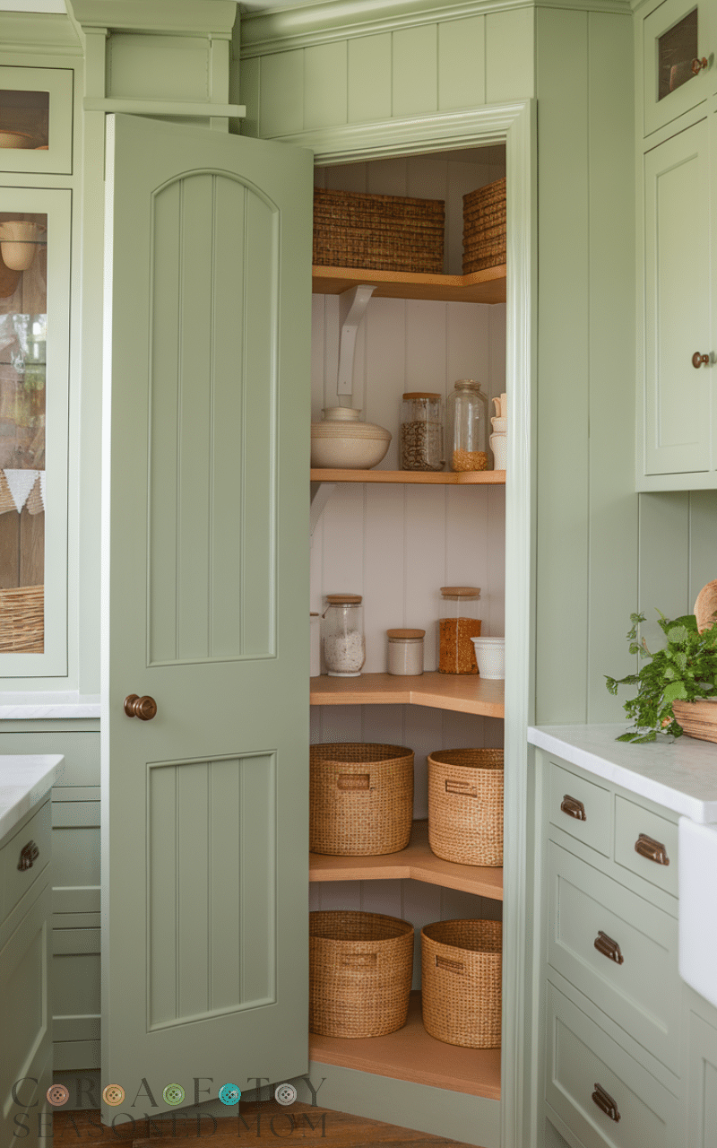 Creating a small pantry nook in soft shades of green is a charming idea for Green Cottage Kitchen Designs because it adds both function and visual appeal and a green pantry nook feels cozy and organized because the color gives warmth while keeping the space lively and bright and it can be open or closed depending on your style and it still adds the same welcoming cottage effect and you can include wooden shelves baskets or jars to enhance the natural feel and this nook becomes a beautiful yet practical feature that blends perfectly with the rest of the kitchen which is why many people love adding it to their Green Cottage Kitchen Designs.