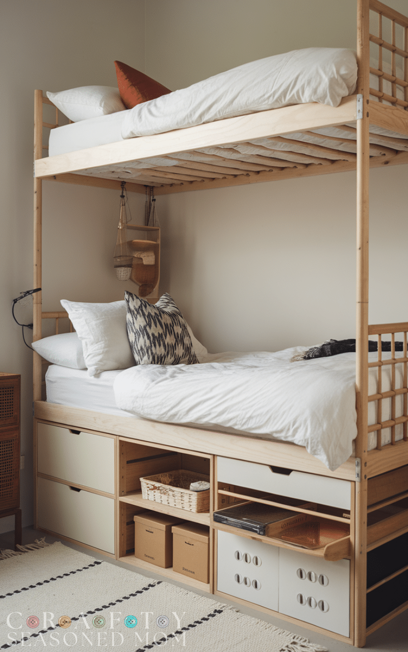 Using UTÅKER beds stacked creatively is a clever ikea hacks for organization that doubles as hidden storage. You can place drawers or boxes underneath for clothes, shoes, or bedding. In guest rooms or kids’ rooms, this saves enormous space. The simple design fits many styles, from modern to boho. This ikea hacks for organization keeps rooms tidy while maintaining a clean, minimalist look.