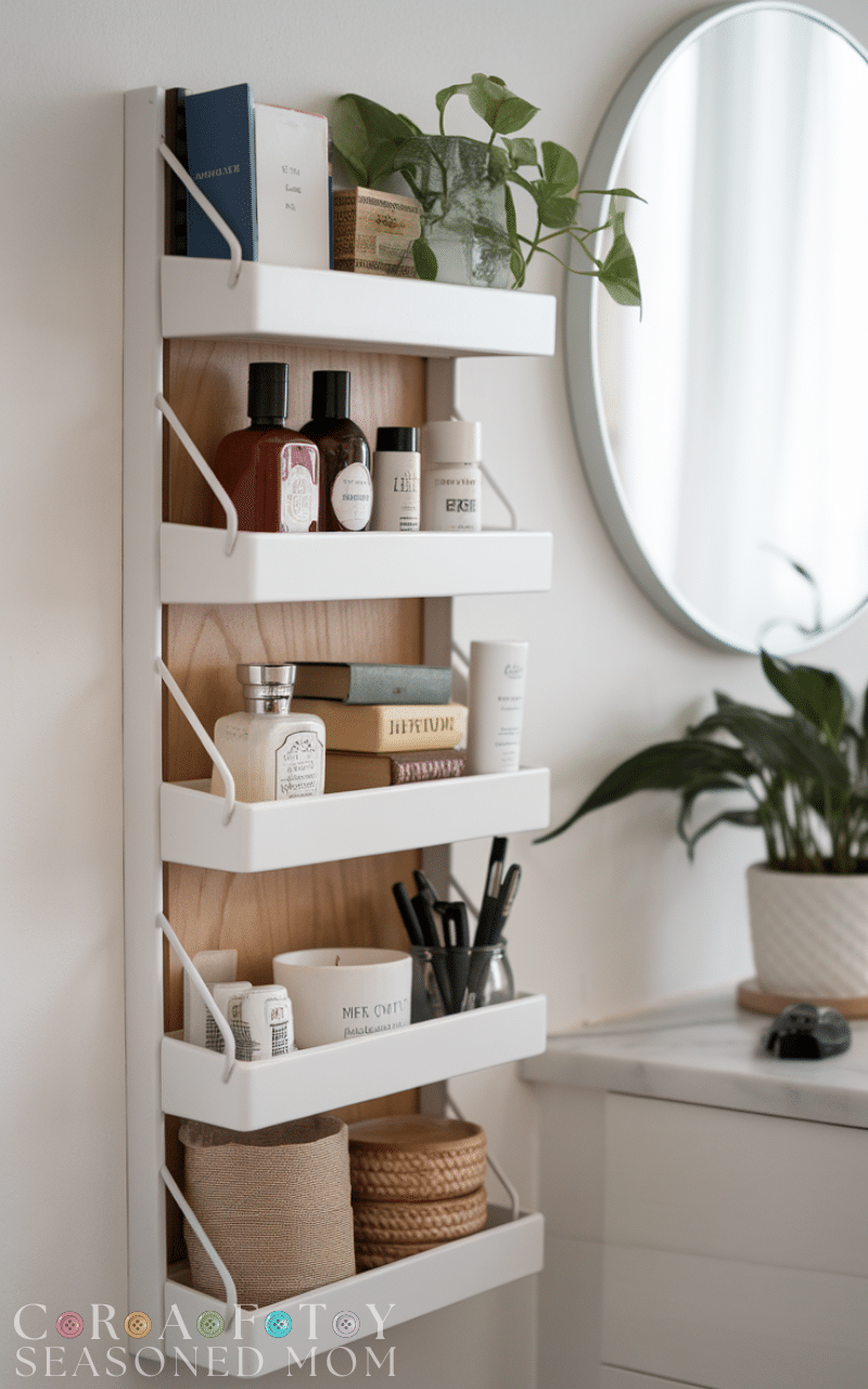 Reusing the BEKVÄM spice rack beyond the kitchen is a creative ikea hacks for organization that works almost anywhere. In the bathroom, it holds perfumes and lotions, while in the office it stores notebooks and pens. In a bedroom, it can display books, plants, or candles beautifully. Mounted vertically or horizontally, it adds storage without taking up floor space. Many people paint or stain it to match their décor. This ikea hacks for organization idea proves that small, simple pieces can have big organizing power in every room of the house.