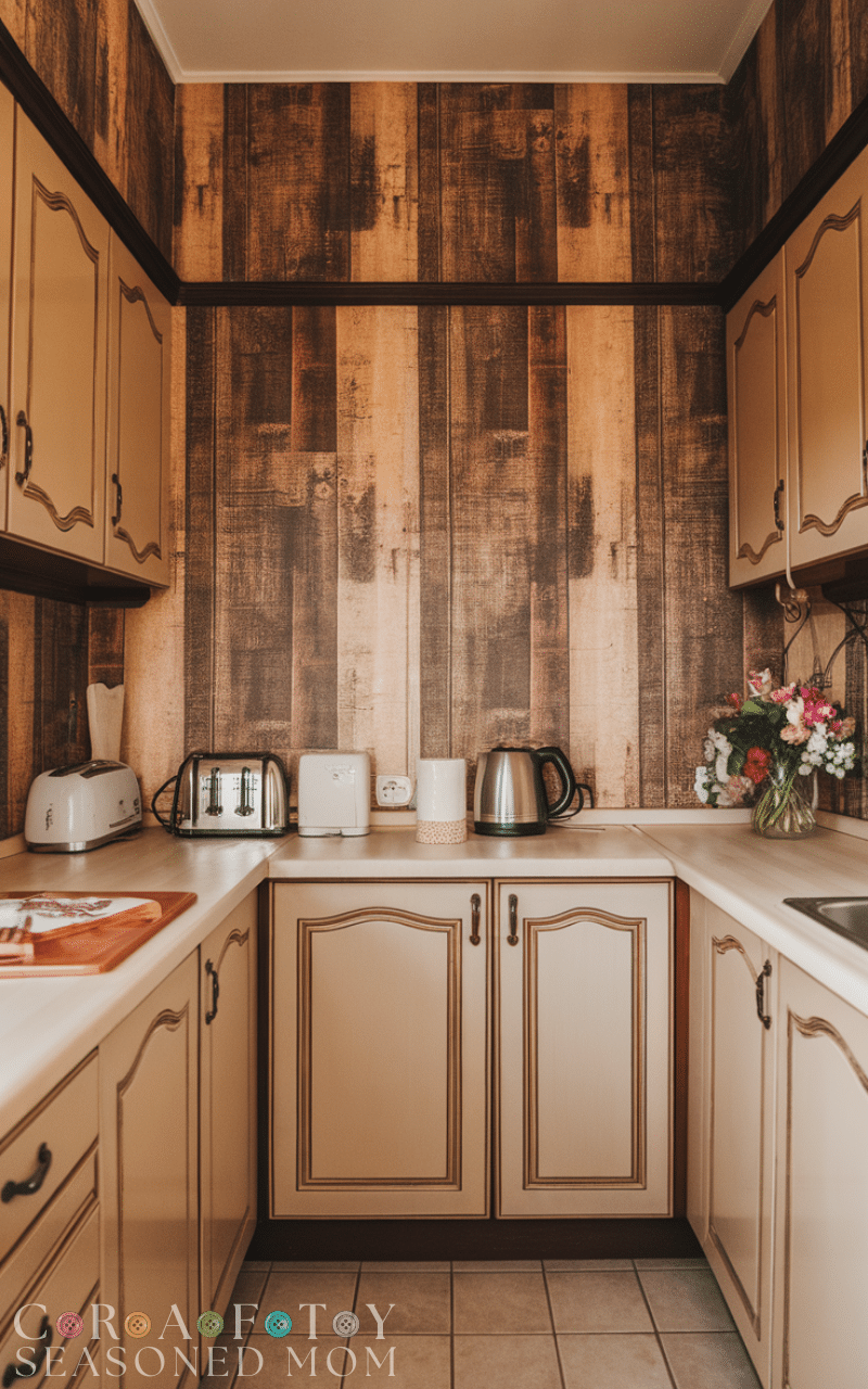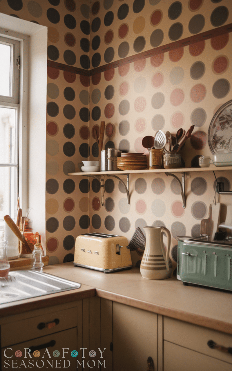 Vintage designs bring personality and nostalgia. Retro polka dots or floral prints add charm and warmth, making the kitchen cozy. I love that vintage wallpaper works in traditional and eclectic kitchens alike, giving the space character while keeping it inviting.