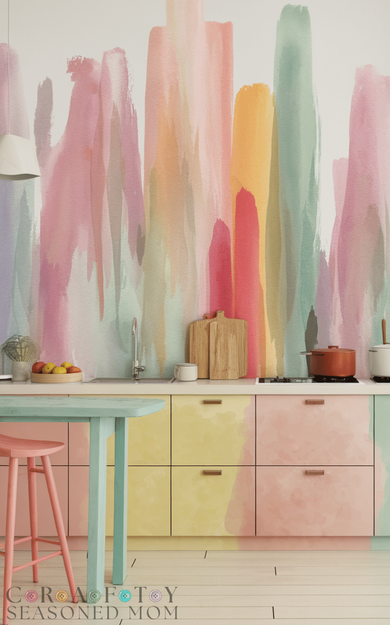 Watercolor designs in kitchen wallpaper bring soft and artistic vibes and you can choose pastel blends or bold watercolor strokes and watercolor kitchen wallpaper creates a calm and soothing atmosphere and it pairs perfectly with minimalist kitchens and colorful accents and you can mix multiple tones for a unique effect and the best part is that watercolor kitchen wallpaper makes your kitchen feel airy and creative adding beauty and harmony to your daily cooking experience.