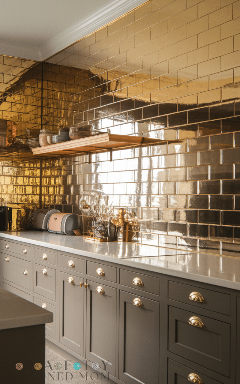 Metallic accents in kitchen wallpaper add a luxurious and modern touch and you can choose gold or silver details and metallic kitchen wallpaper reflects light making the kitchen appear brighter and more spacious and it pairs beautifully with neutral and dark cabinets and you can use it for an accent wall to avoid overwhelming the space and the best part is that metallic kitchen wallpaper creates a sophisticated and elegant atmosphere making your kitchen feel special and stylish.