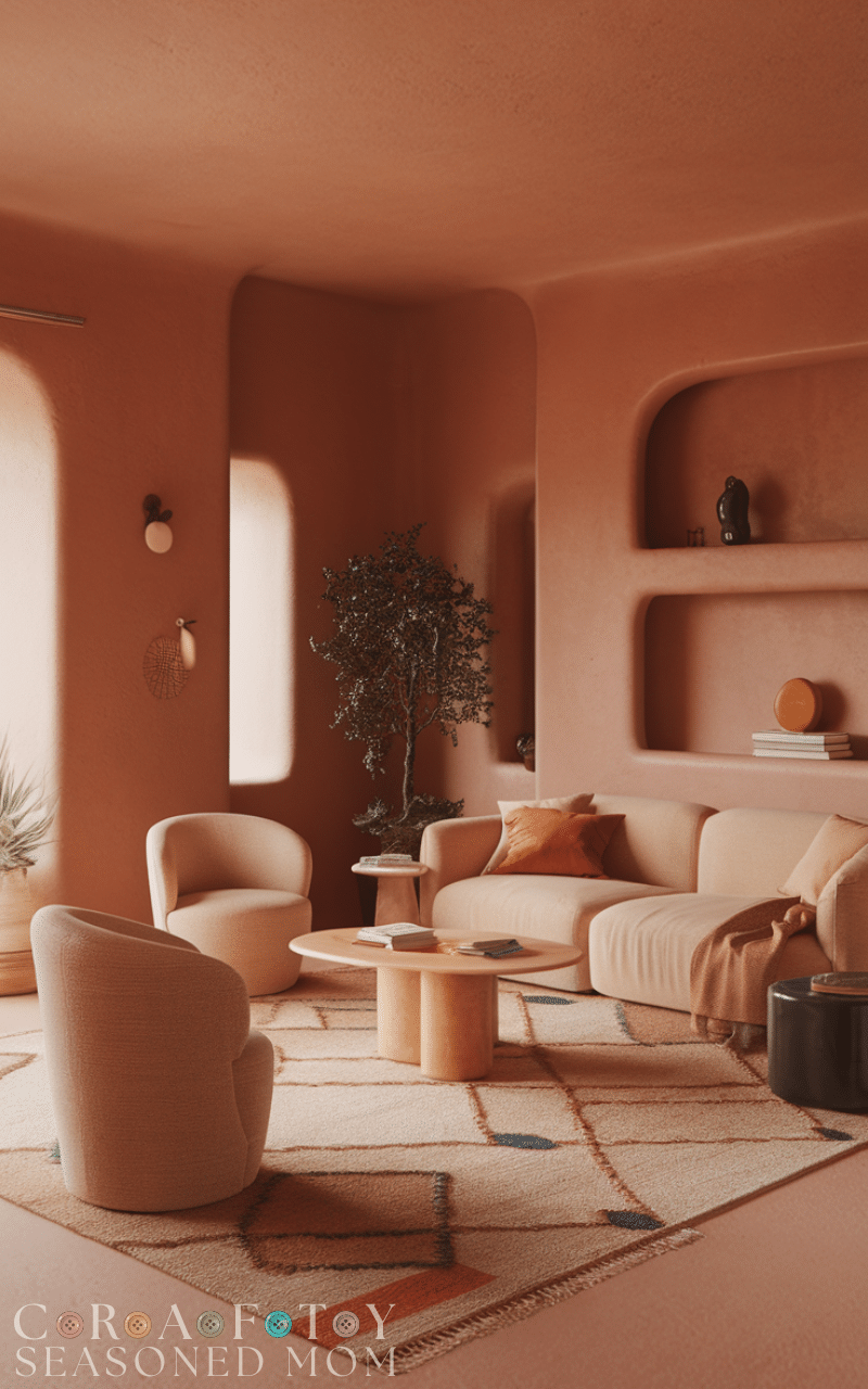 Soft terracotta brings warmth and personality to living room paint colors without feeling overwhelming. This earthy shade adds a cozy and inviting feel that works well with neutral furniture and natural textures. Terracotta creates a welcoming environment and adds depth to the living room, making it perfect for homes that aim for a warm and lived-in look.