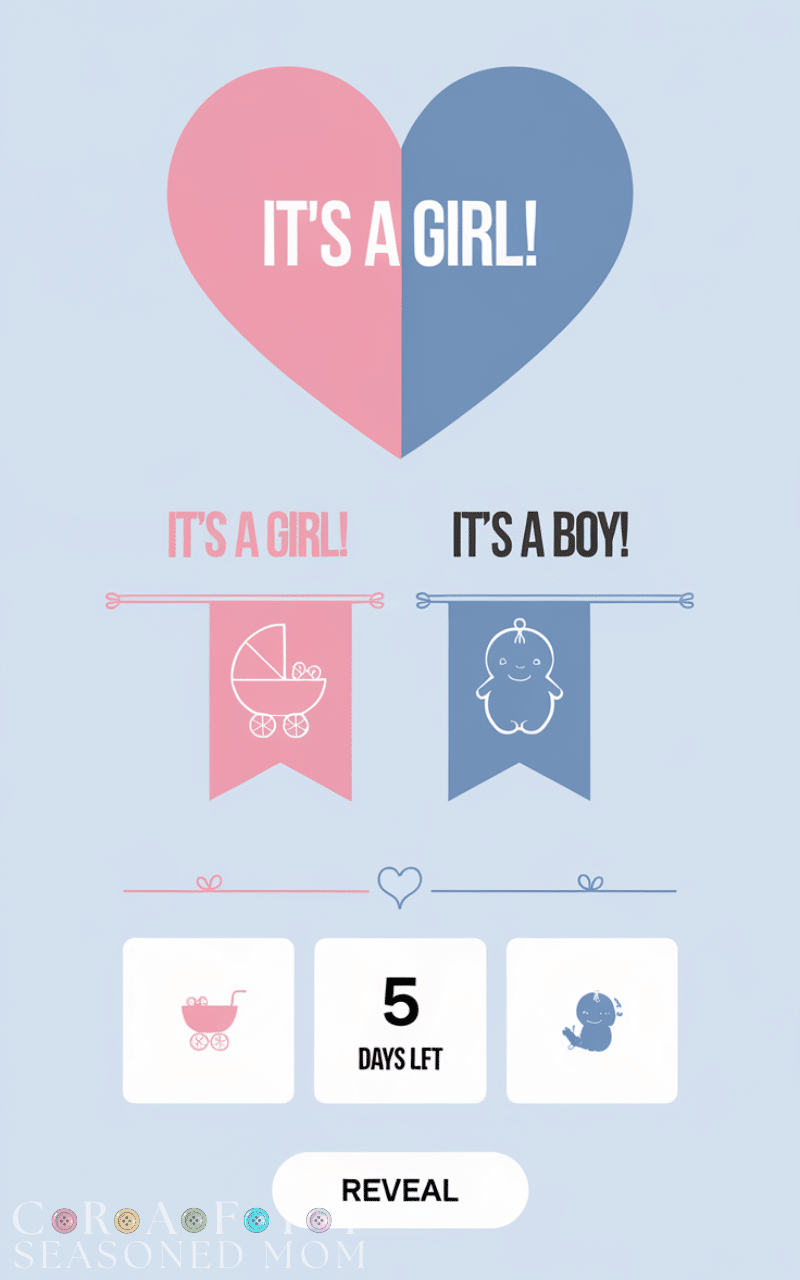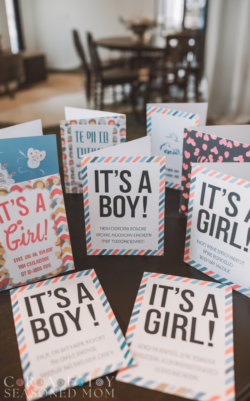 Design a simple e-card or email with a countdown or clickable reveal. This long distance gender reveal idea is budget-friendly and perfect for sharing the news with multiple people at once in a creative way.