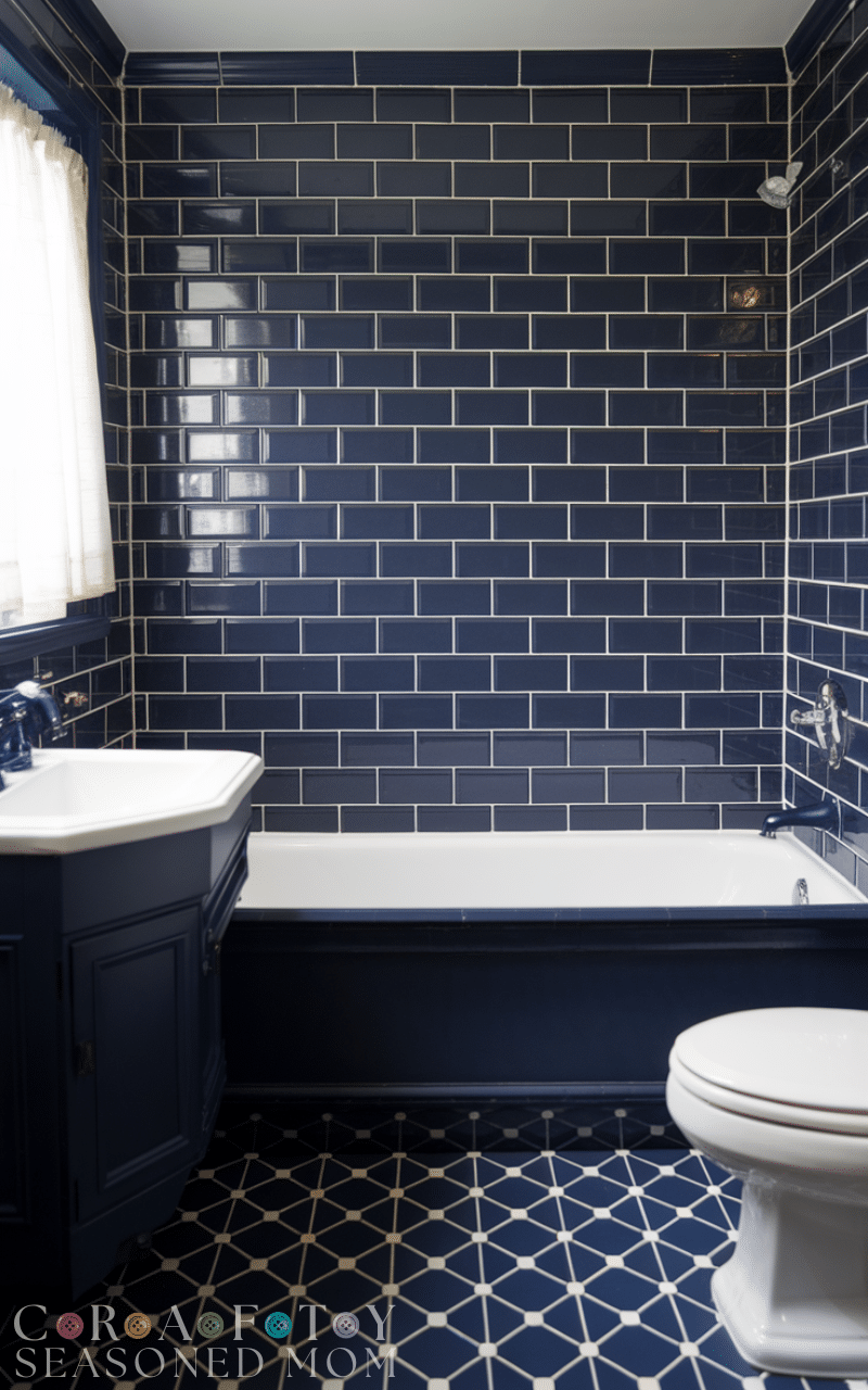 12. Navy Blue Tile for a Luxe Feel