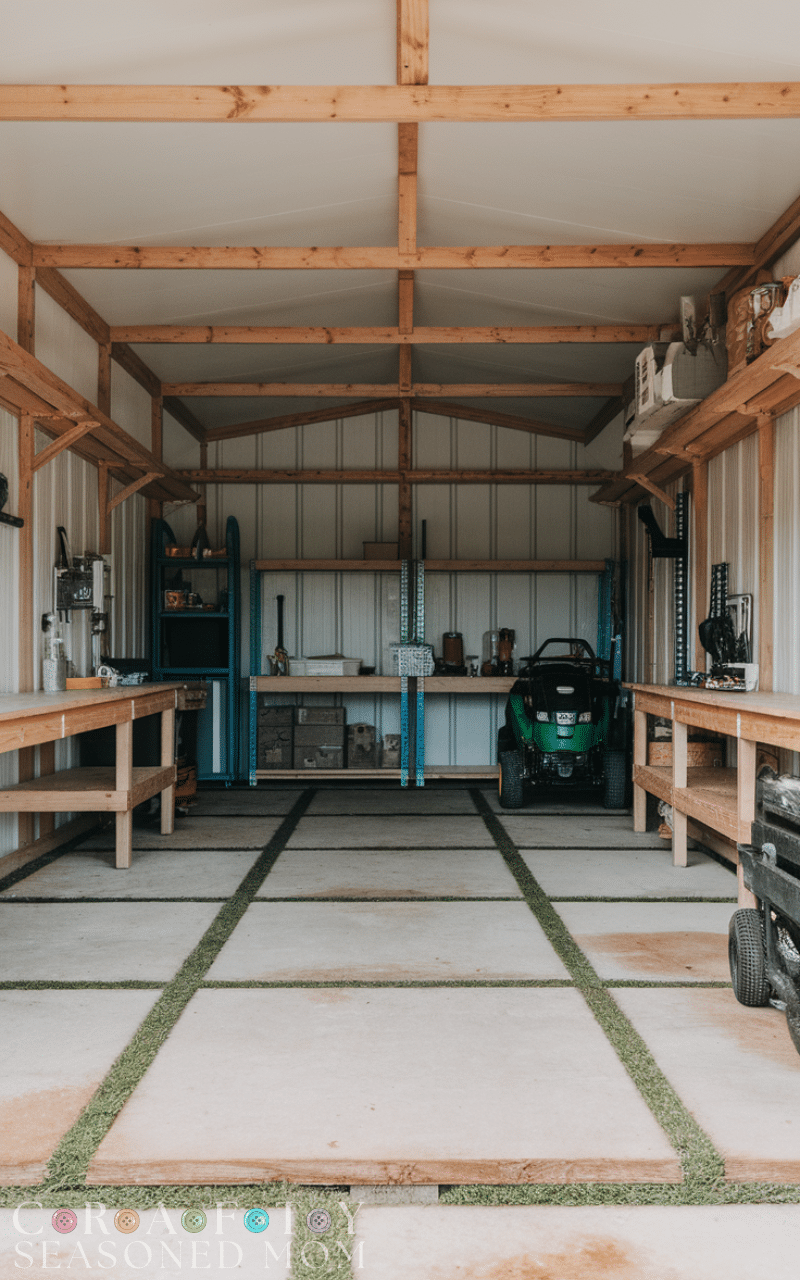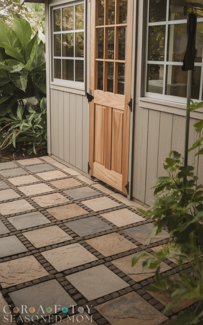 Stone or paver flooring adds durability and visual appeal to sheds. These shed flooring ideas work well for garden sheds or outdoor workspaces. Pavers provide excellent drainage and require minimal maintenance. With proper leveling, stone flooring creates a sturdy, weather-resistant surface that blends beautifully with outdoor landscapes.