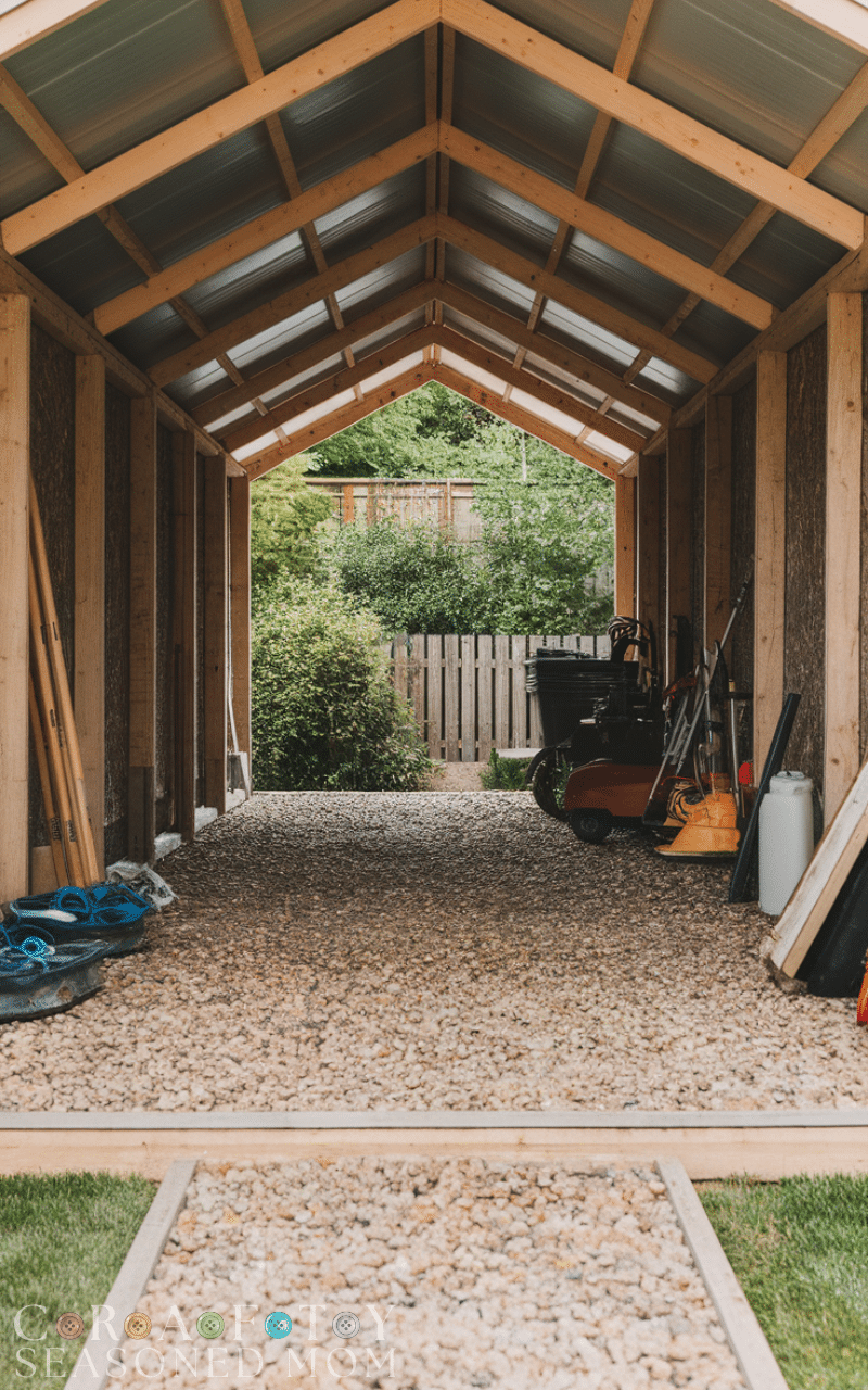 Gravel flooring is one of the most affordable and practical shed flooring ideas, especially for outdoor or garden sheds. It provides excellent drainage, helps prevent moisture buildup, and is easy to install. A compacted gravel base creates a stable surface that works well for tool storage and lawn equipment. This type of flooring also reduces the risk of rot and pests. Gravel shed flooring ideas are ideal for homeowners who want a low-maintenance, budget-friendly solution that still offers durability and proper ground support.