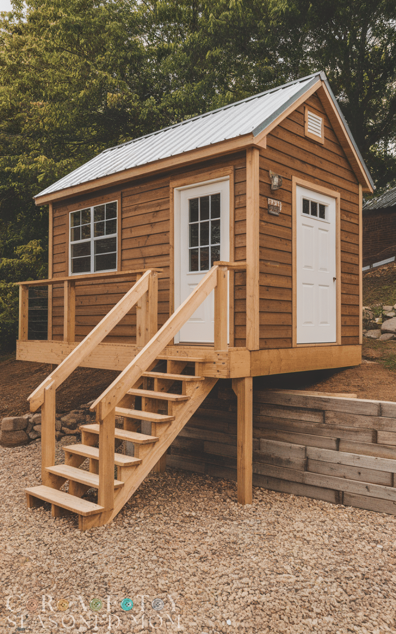 Raised deck flooring improves airflow beneath the shed, reducing moisture problems. This is one of the most practical shed flooring ideas for wet or uneven ground. Using pressure-treated lumber ensures durability. Raised deck shed flooring ideas help protect the structure while providing a strong and long-lasting foundation.