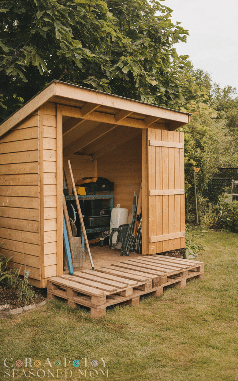 Pallet wood flooring is a budget-friendly and creative shed flooring idea. With proper preparation and sealing, pallets can be transformed into a sturdy floor. This option works best for light-use sheds or decorative garden spaces. Pallet shed flooring ideas are popular among DIY enthusiasts who want an affordable and sustainable solution with a rustic feel.