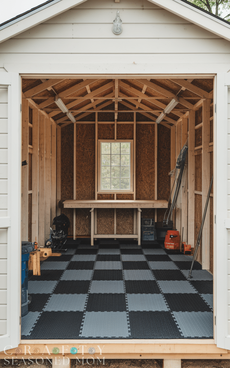 Interlocking tiles offer versatile and modern shed flooring ideas that are easy to install and customize. Made from plastic or rubber, these tiles snap together and create a durable, water-resistant surface. They are ideal for sheds used as hobby rooms or workshops. Interlocking shed flooring ideas allow for quick updates and replacements while providing a clean, professional appearance.