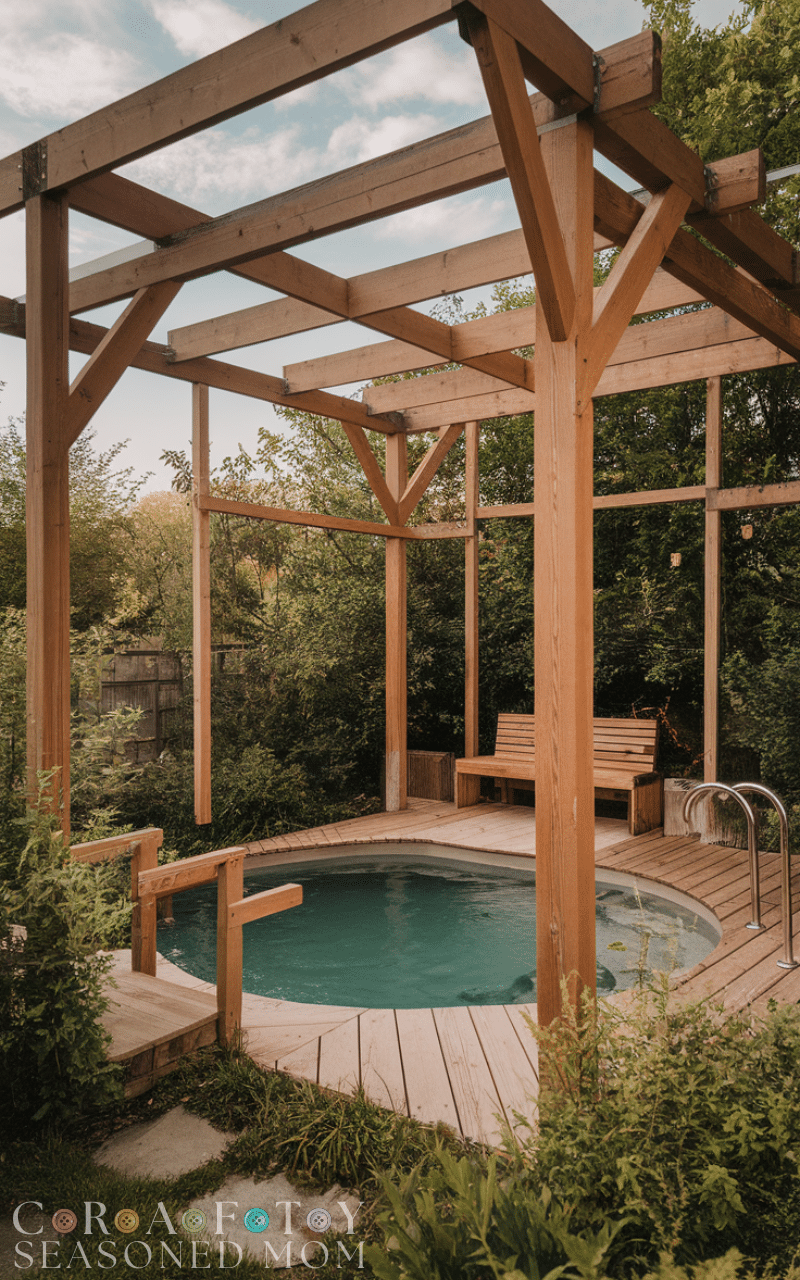 Building a wooden frame for your pool adds a rustic and stylish touch. This small backyard pool idea on a budget gives the appearance of a more permanent structure while remaining affordable and customizable to your space.