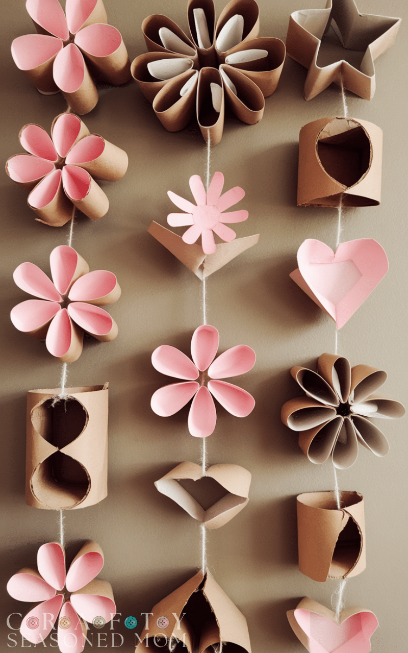 Cut and shape multiple toilet paper rolls into flowers, hearts, or stars, then glue them together to create wall art or a garland. This decorative toilet paper roll craft adds charm to any room and is perfect for seasonal or festive decorations.