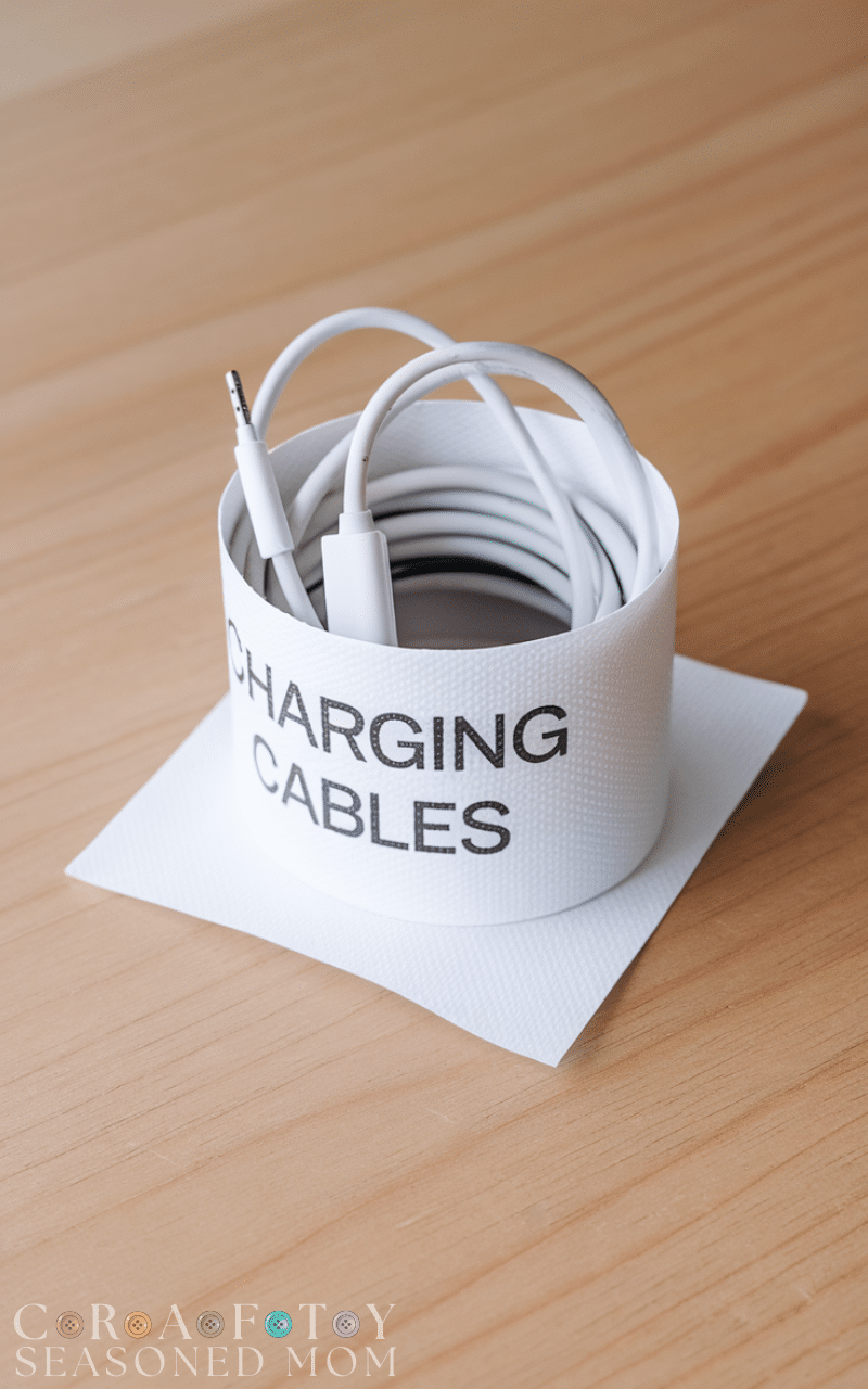 Flatten a toilet paper roll and use it to organize charging cables, earphones, or cords. Label each roll for different cables. This practical toilet paper roll craft helps prevent tangling and keeps your workspace neat on a budget.