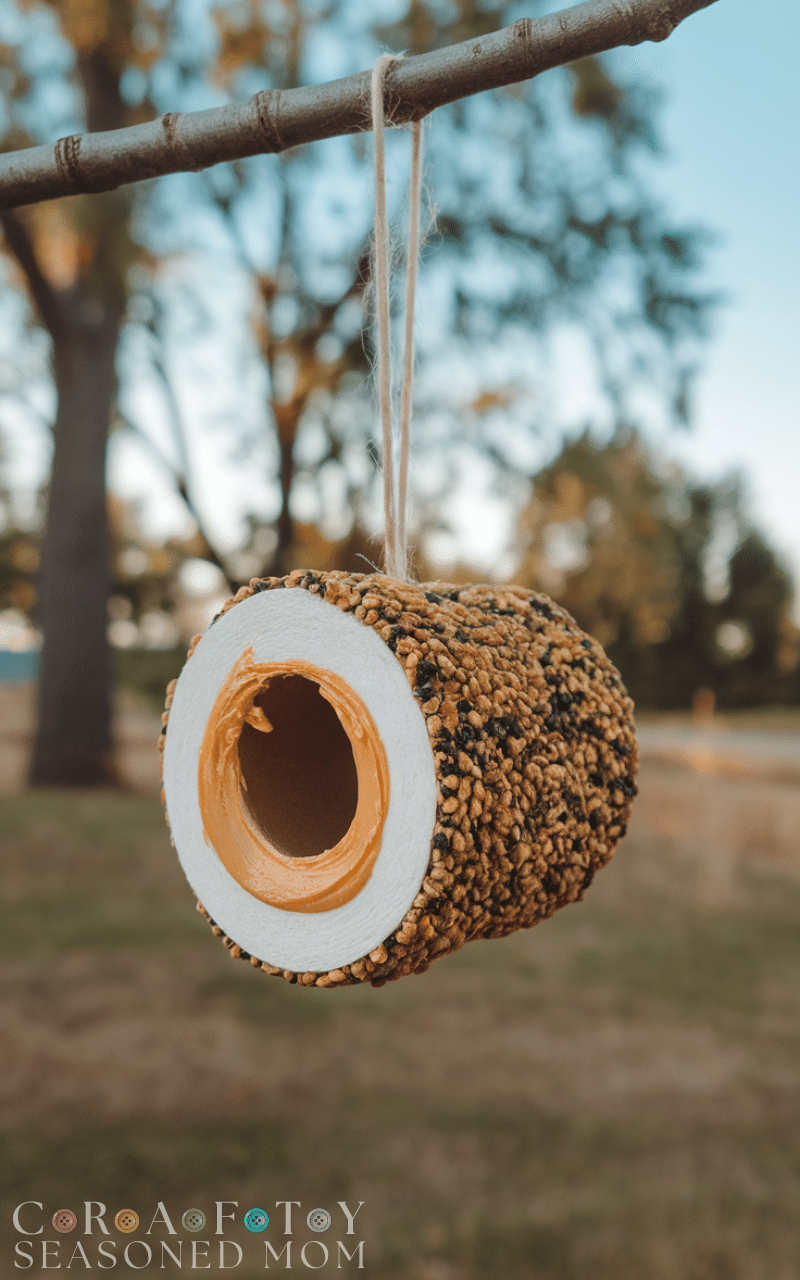 Spread peanut butter on a toilet paper roll, roll it in birdseed, and hang it from a tree with string. This eco-friendly toilet paper roll craft is perfect for kids and nature lovers. It’s affordable, fun, and helps feed local birds during the colder months.
