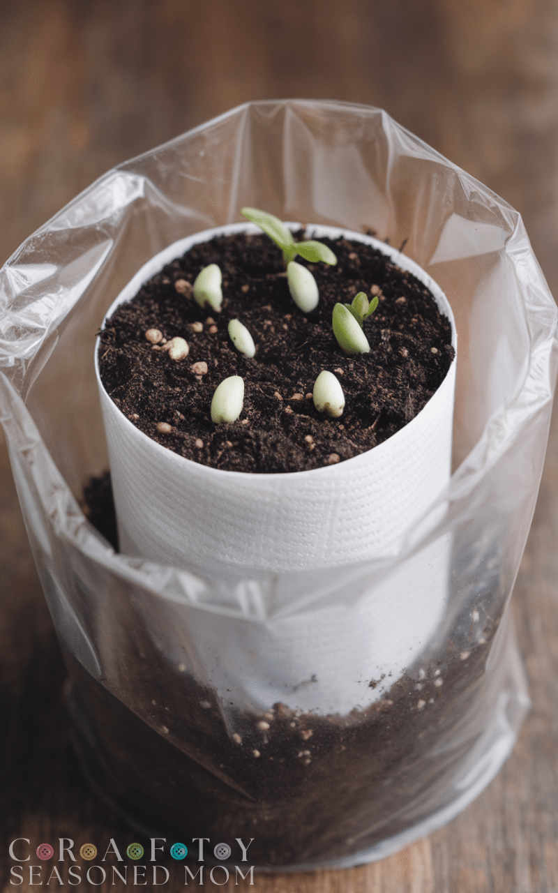 Line a toilet paper roll with a small plastic bag, fill it with soil, and plant seeds. This eco-friendly toilet paper roll craft is great for starting seedlings at home. Once plants are ready, you can even plant the whole roll in the soil, as it’s biodegradable.