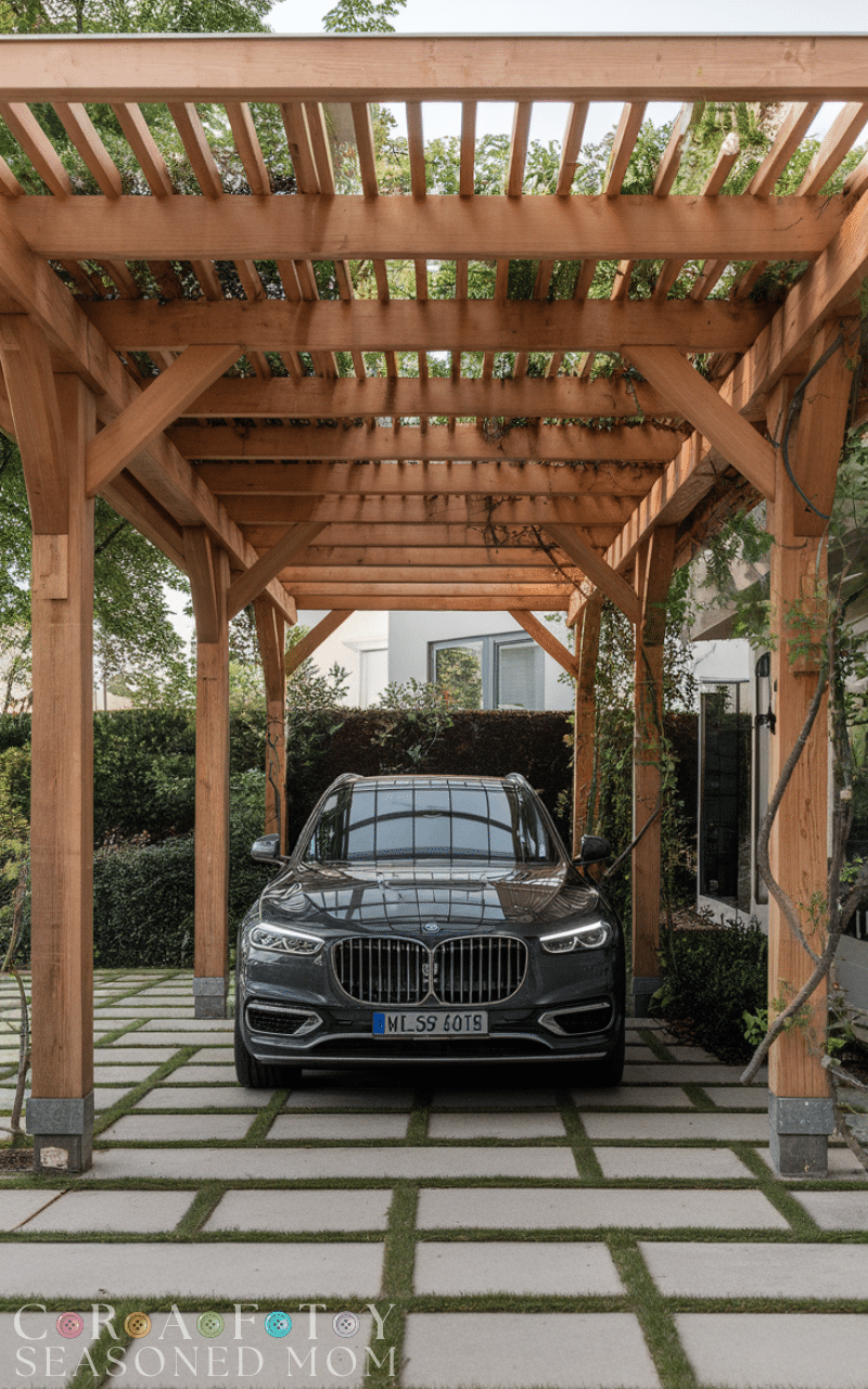 11. Pergola-Style Wooden Carport