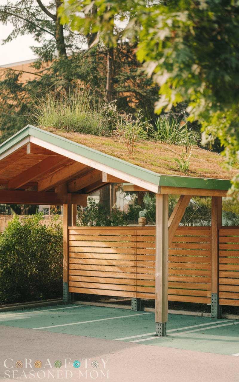 12. Wooden Carport with Green Roof