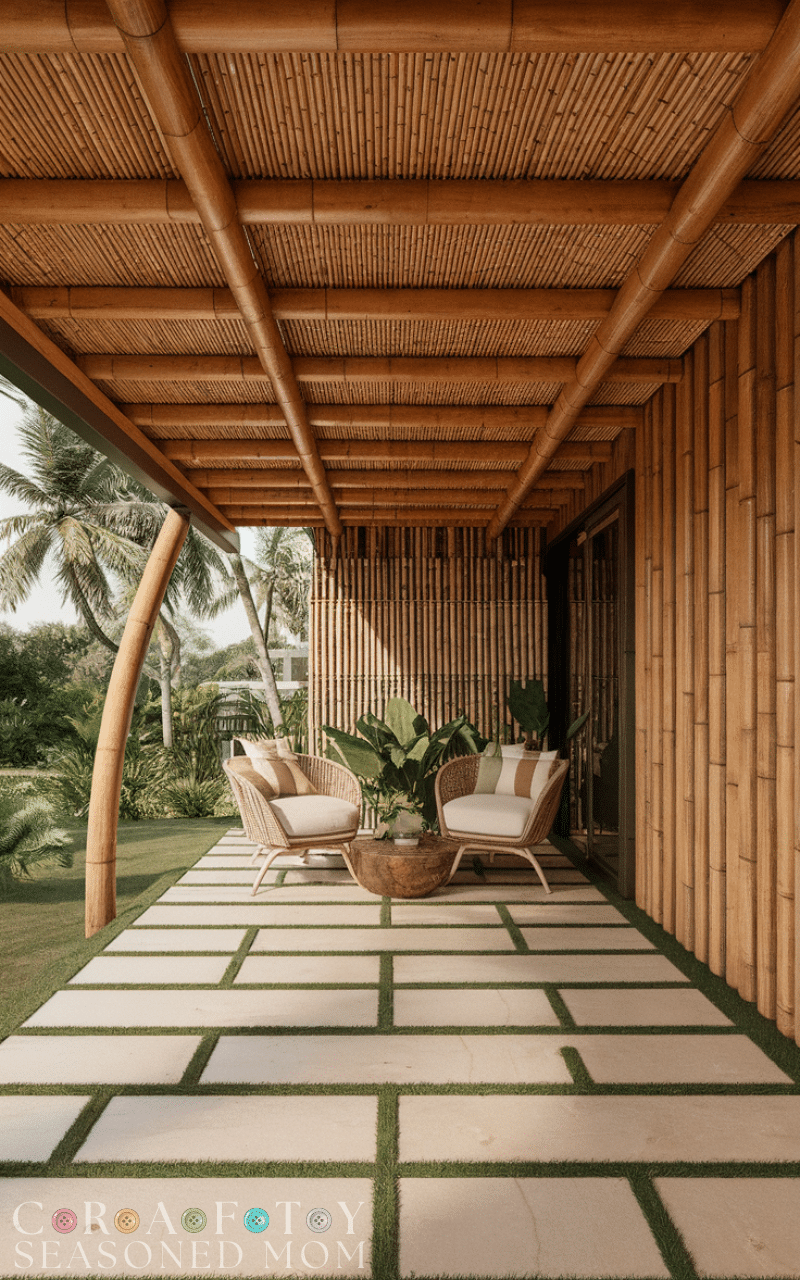 4. Wooden Carport with Bamboo Accents