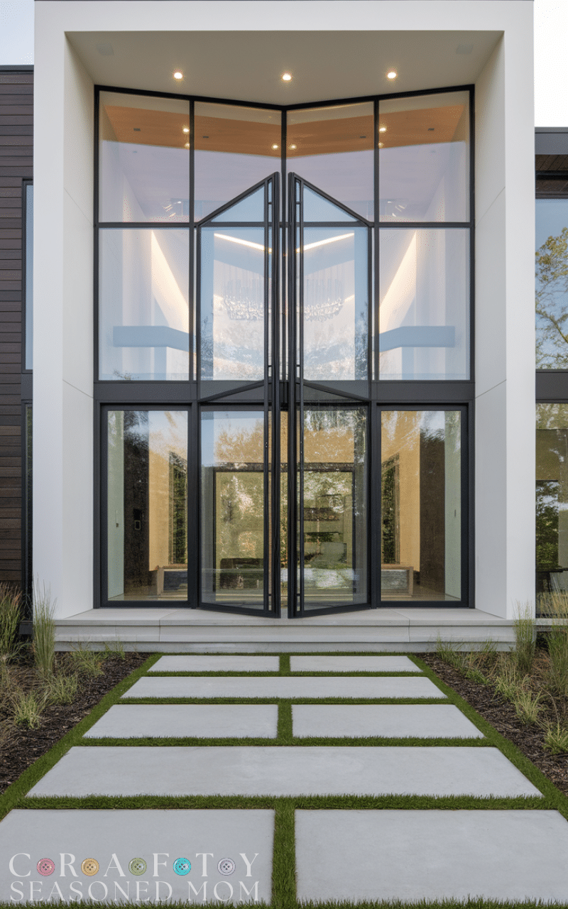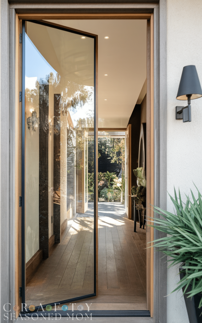 Pivot doors are one of the most striking examples of modern entry design because they rotate on a central hinge, creating a smooth and dramatic opening experience. I love how these doors immediately add a luxury feel to any home, especially when used in bold Modern Door Designs that focus on clean lines and wide openings. They can be made from wood, glass, or metal, making them flexible for both minimalist and high-end architectural styles.