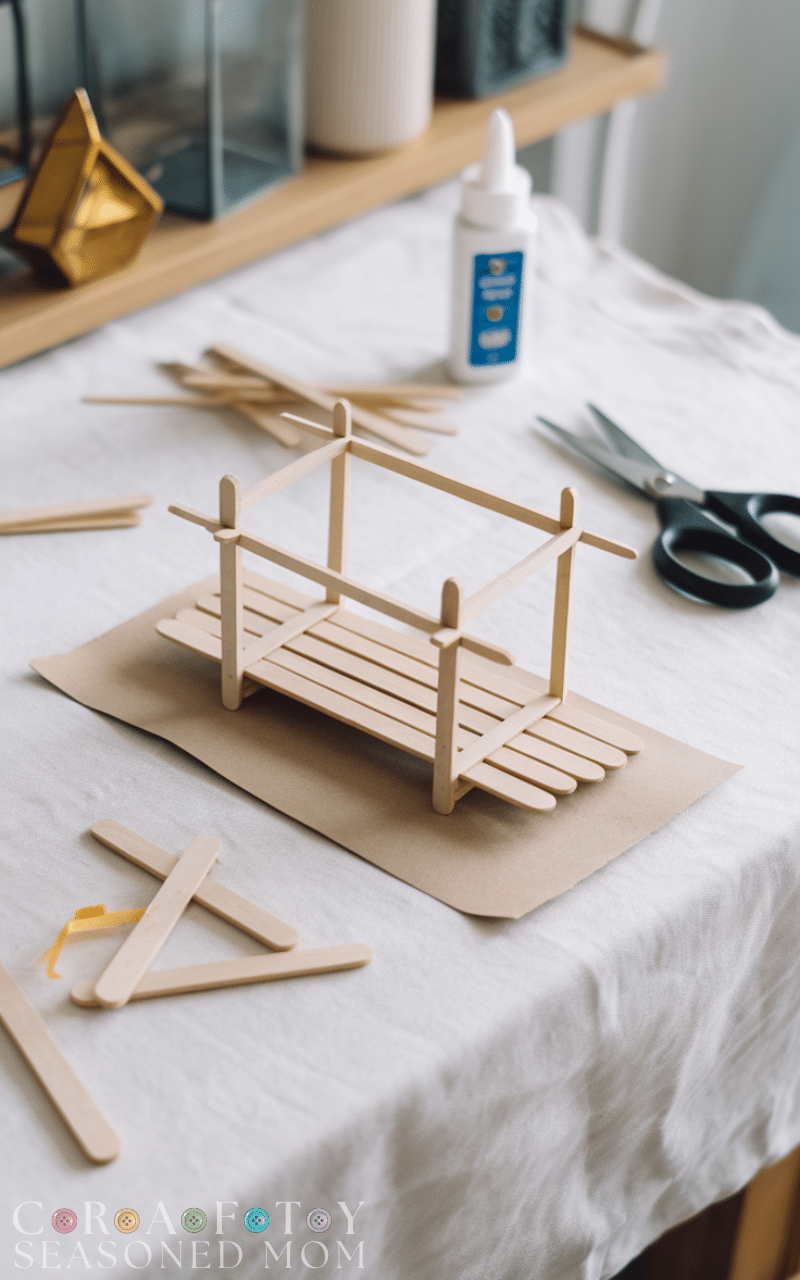 Construct mini bridges using popsicle sticks as beams and supports. This project is educational and fun, teaching kids about balance, design, and engineering. Popsicle stick crafts like mini bridges encourage problem-solving and creativity, making it a hands-on learning activity. Decorating the bridge afterward adds a personal touch, turning a simple DIY project into both an educational and decorative creation.