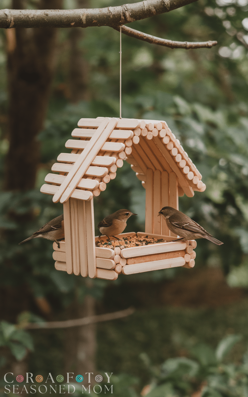 Construct a bird feeder by gluing sticks into a small box or platform shape, then fill it with birdseed. Popsicle stick crafts like bird feeders are perfect for encouraging wildlife and teaching kids about nature. Decorate with paint for extra charm. This easy DIY project is affordable, hands-on, and gives you a fun way to engage with the outdoors while enjoying crafting at home.