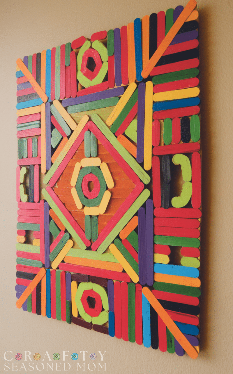 Create abstract or patterned wall art using popsicle sticks glued in shapes or geometric designs. Paint sticks in different colors for a vibrant display. Popsicle stick crafts like wall art allow endless creative possibilities, transforming simple materials into eye-catching décor. This project is affordable, beginner-friendly, and gives you a handmade piece that adds personality and charm to any room.