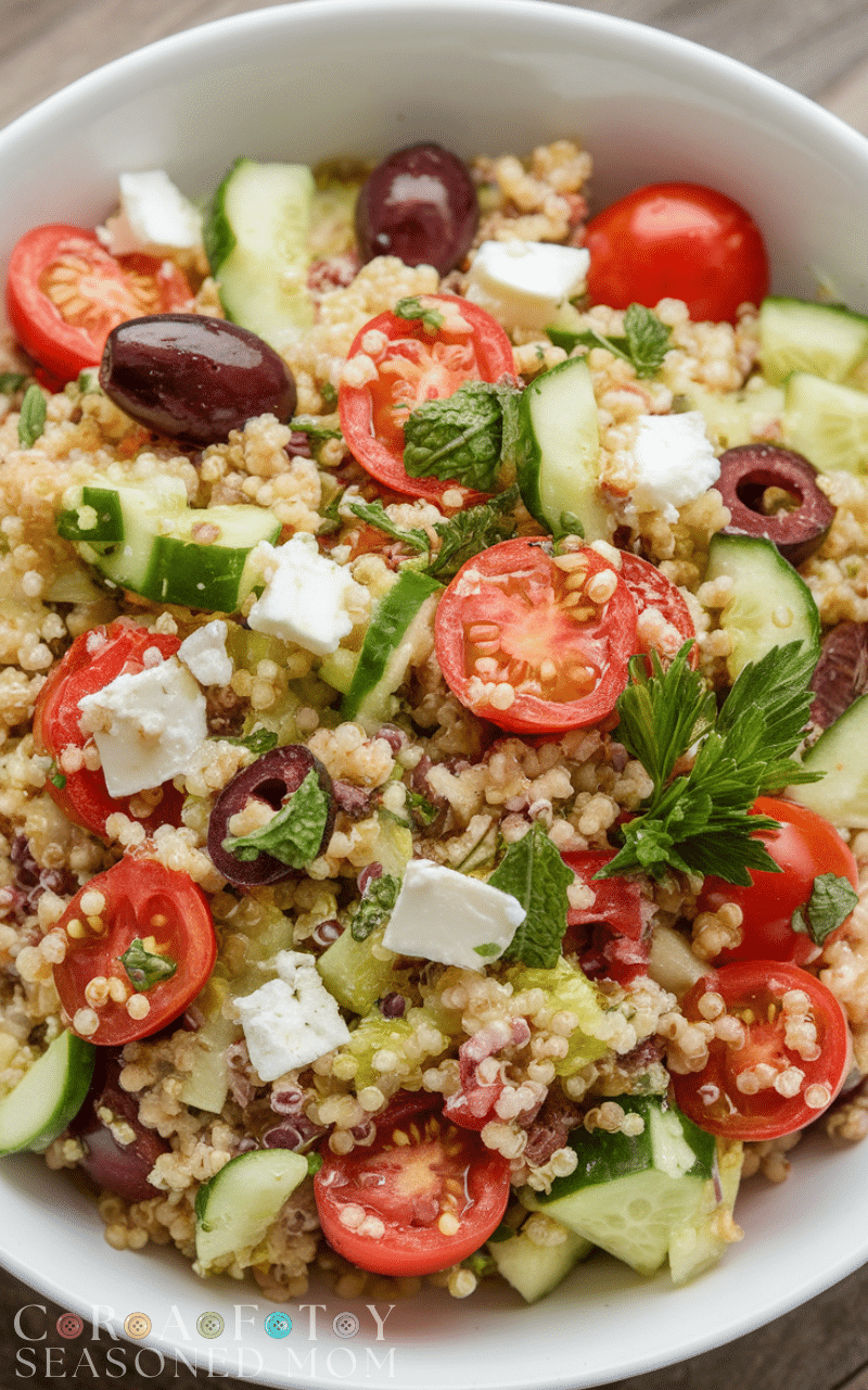Fresh and colorful Quinoa Recipes like this Mediterranean salad are some of my favorite options when I want something light but still filling, especially because the mix of cherry tomatoes, cucumbers, olives, feta cheese, and herbs creates a refreshing balance of flavors that feels bright and satisfying. I often prepare this dish ahead of time since make-ahead Quinoa Recipes are incredibly helpful during busy weeks, and having a bowl ready in the fridge makes lunch or dinner feel quick, simple, and naturally healthy without extra planning.