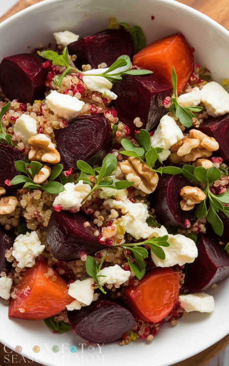 Roasted beets and quinoa make a stunning combination in this colorful salad. Toss cooked quinoa with roasted beets, goat cheese, walnuts, and a light vinaigrette for a sweet, tangy, and crunchy experience. This easy quinoa recipe is elegant enough for dinner parties yet simple enough for a weekday meal. Nutritious and satisfying, it’s a great way to enjoy quinoa alongside seasonal vegetables. The flavors balance beautifully, and the dish provides fiber, protein, and essential nutrients, making it a healthy and delicious addition to your meal rotation.